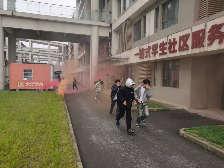 随着消防员总指挥一声“演练开始”,万象城消防应急演练正式启动。本次演练模拟1号学生公寓二楼突发火情,公寓管理员、安保及物业人员迅速响应,有序组织学生疏散至餐厅南侧临时安全区域,同步开展灭火救援与被困人员搜救工作,成功救出6名模拟被困学生,校医院医护人员第一时间跟进救治。
