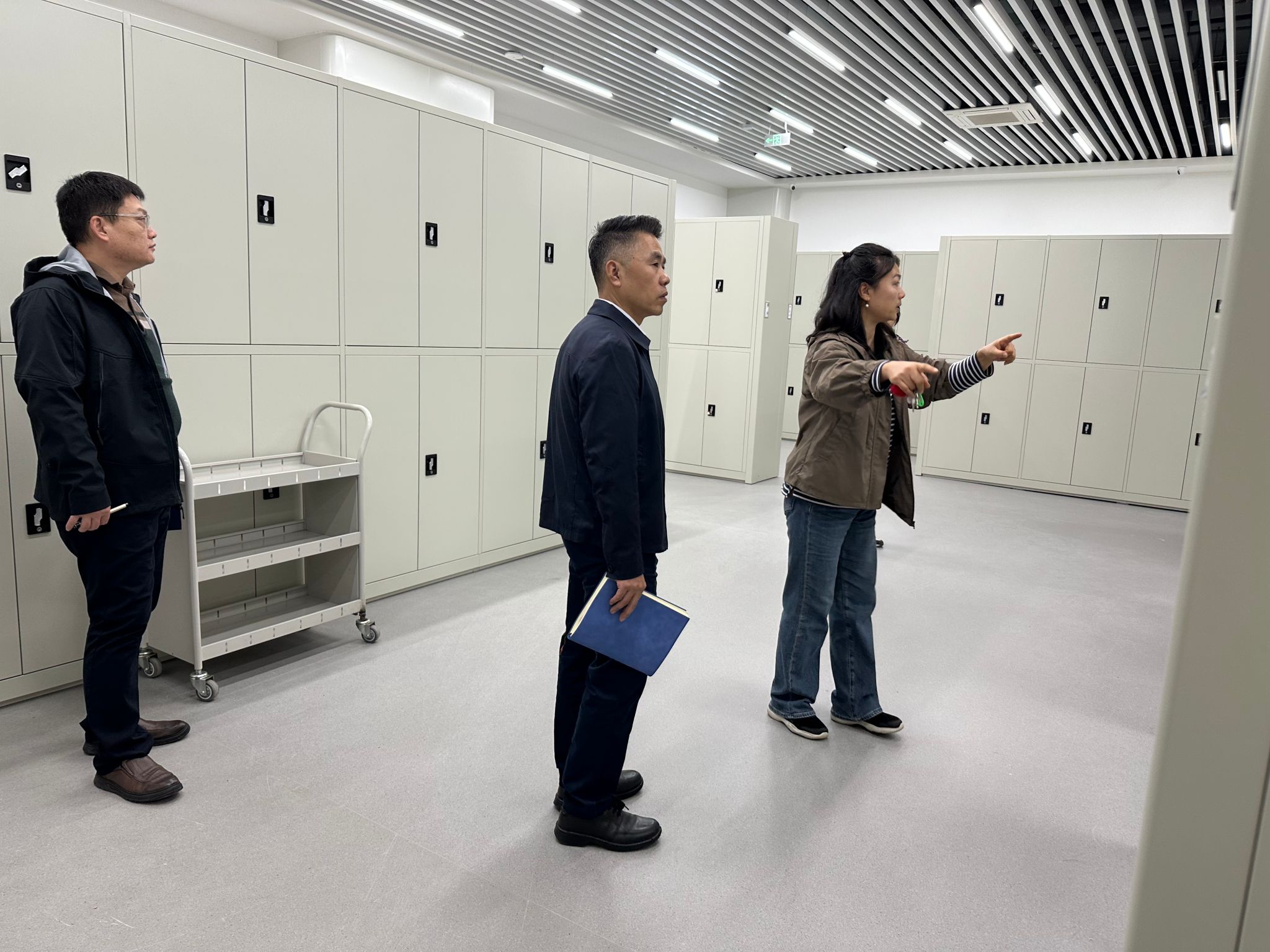 张军一行实地察看了档案馆的档案库房、整理编目室、数字化加工现场及办公室等功能区域,详细询问了馆藏档案的数量与结构、珍贵特色档案的保管与利用、档案数字化建设进展以及安全防护设施配备与运行状况。调研过程中,张军一行了解了近年来在资源收集、保管保护、数字化建设、人事档案管理等方面内容,并认真询问大家在工作中遇到的实际困难与挑战。