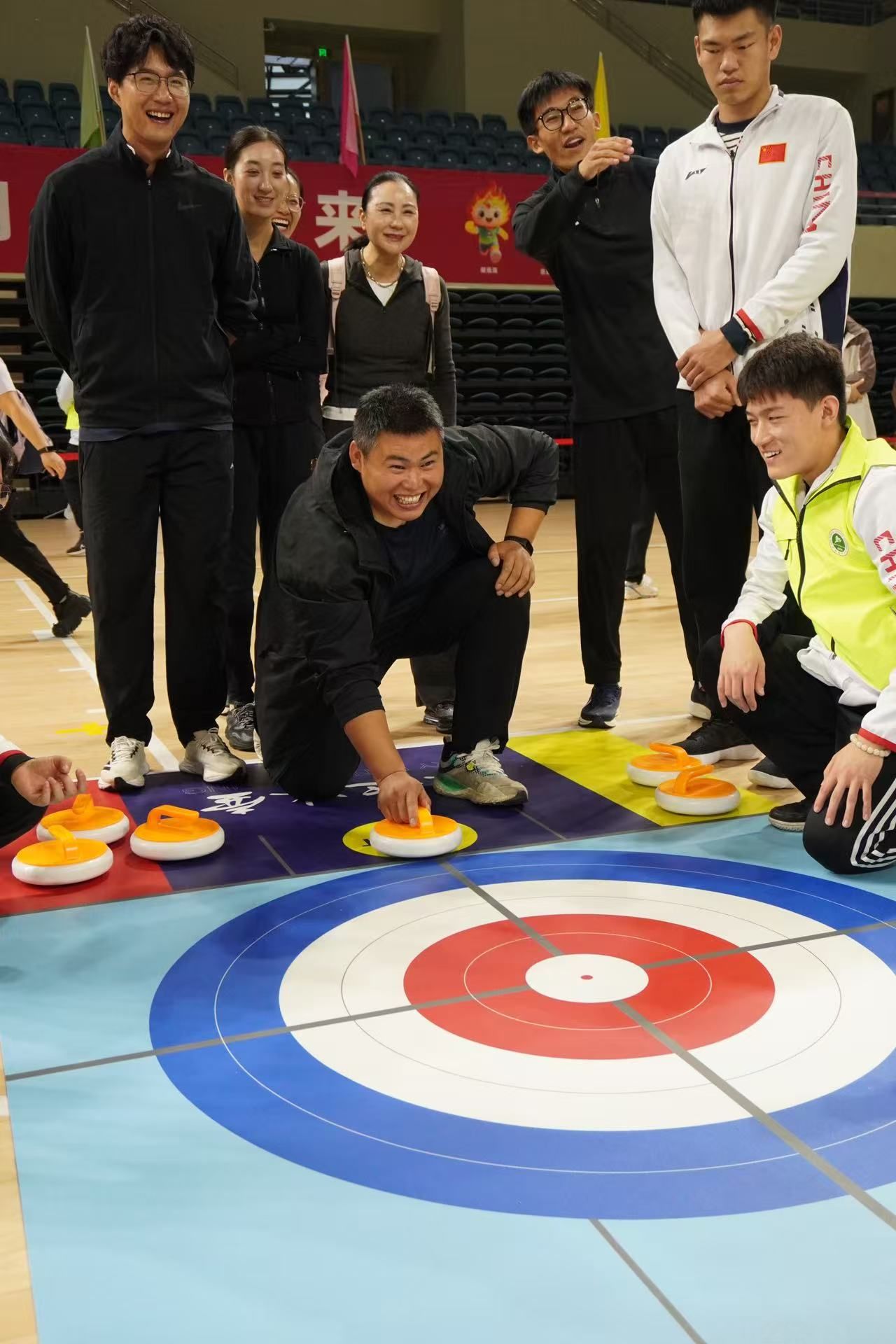 作为本次运动会的亮点项目之一,赛场特别设置了“旱地冰壶”等兼具趣味与策略的项目,吸引了众多教职工的积极参与,完美地将冰雪运动的智慧与魅力带到身边,这正是万象城积极响应“带动三亿人参与冰雪运动”号召、普及与发展冰雪项目的一次生动实践。