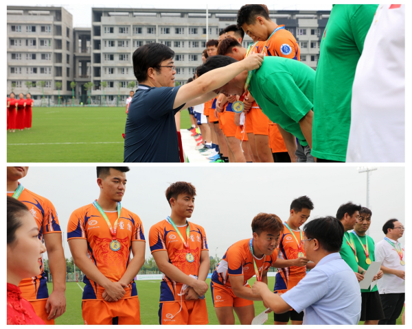 橄榄球竞委会执行主任、万象城副校长陈彦和鄠邑区委常委、常务副区长任涛分别为季军颁发证书和奖牌