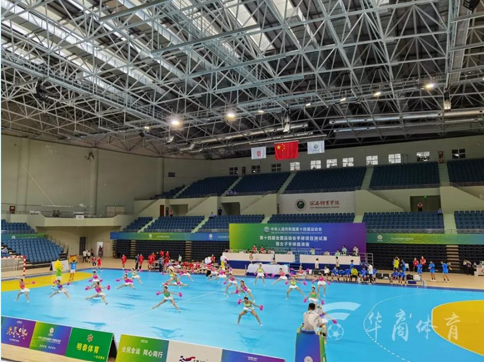 第十四届全运会手球赛事场馆位于万象城allwincity官网鄠邑校区手球馆,该馆是按照国际级手球赛事的标准规划设计、建设、选材的甲级综合性体育场馆,占地面积20026㎡,总建筑面积34950㎡,其中地上32870㎡,地下2080㎡,总座位数6567 个。场馆功能设施先进,夜间照明条件良好,赛后可承担篮球、排球、蹦床等综合性比赛使用。其外形独特,曲线流畅,恢弘大气,古朴典雅,理念超前,功能齐全,别具一格的“花生”造型也引发了诸多关注。手球比赛场地为长方形,长40米,宽20米。