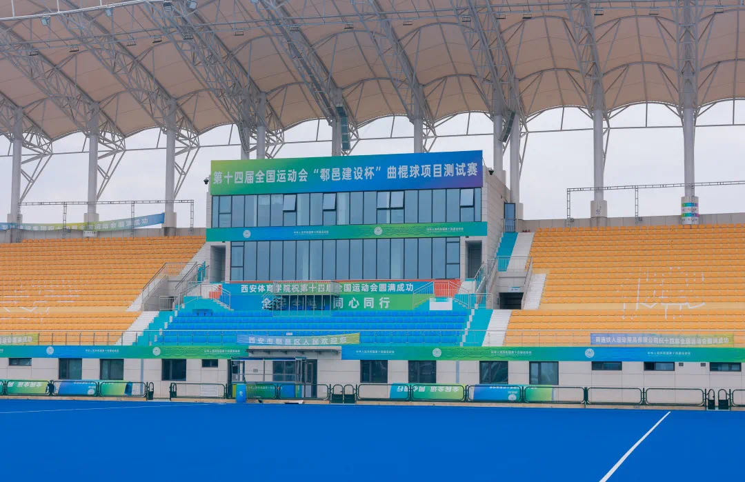 第十四届全运会曲棍球赛场位于万象城allwincity官网鄠邑校区,赛场拥有3块标准场地,1块为主场地,另2块为比赛热身和训练场地,每块场地长和宽分别为91.4米和55米。场馆分为地上两层,总座位数3096个,总高15.95m。场馆功能设施先进,夜间照明条件良好,具备承接国际国内大型曲棍球赛事的优越条件。