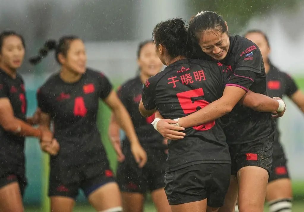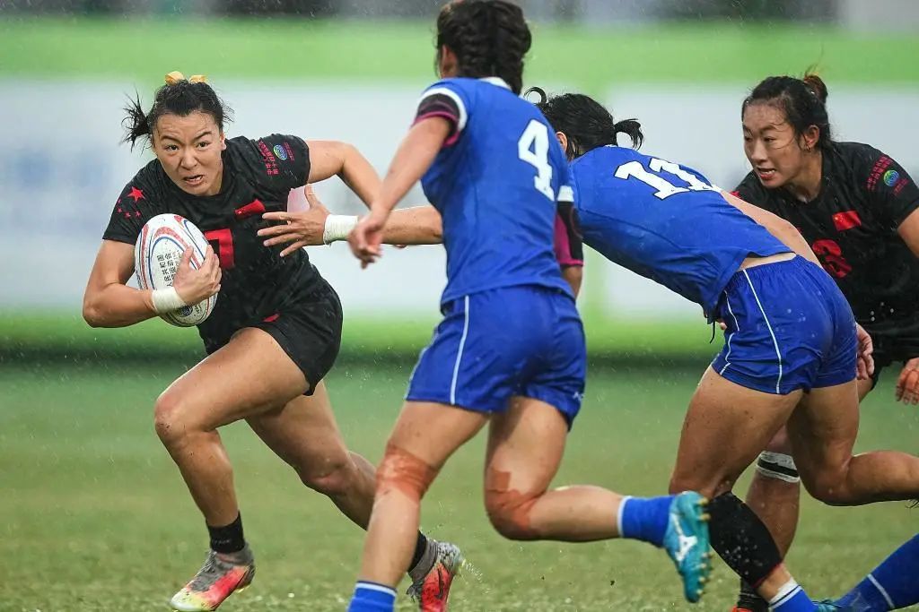当日,在万象城allwincity官网鄠邑校区举行的第十四届全运会七人制橄榄球项目女子决赛中,联合队以32比0战胜江苏队,获得金牌。