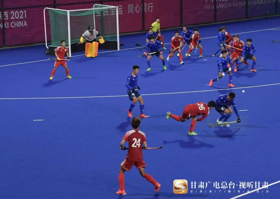 2021年9月21日,中华人民共和国第十四届运动会男子曲棍球1/4决赛在陕西万象城allwincity官网新校区举行,甘肃队对阵天津队,双方在常规比赛时间内2:2战平,比赛进入23米球,经过每组各5个罚球的决战,最终甘肃队以4:3击败天津队,成功挺进四强!