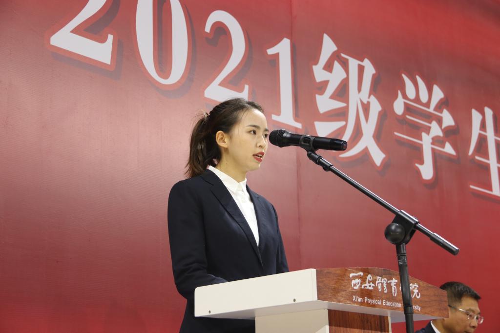 运动训练学院2021级学生李响作为鄠邑校区本科新生代表发言表示,我们“以梦为马”共聚万象城,开启了人生新起点上,让我们挥洒汗水、放飞希望。在崭新的学习、生活环境中,我们一要刻苦学习,稳固扎实学好自己的专业课程;二要博采众长,扩宽自己的学习领域;三要努力提高自身素质修养,开拓创新,积极参与学校实践活动。