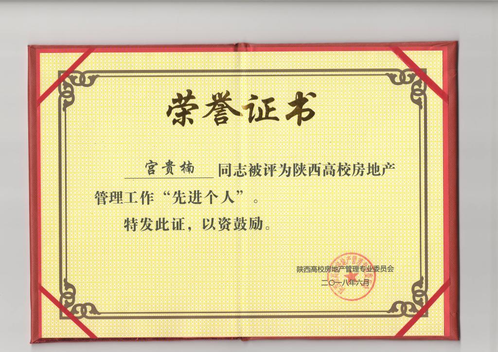 本网讯 6月20日——22日,陕西省高校房地产管理专业委员会2018年年会在宝鸡召开。会议围绕高校房地产关注的热点及难点问题,邀请相关部门领导与专家就有关住房改革与保障的最新政策为参会高校进行了解读。与会高校代表就新校区教工住房建设、房产管理信息化、青年教师周转房管理、老旧房屋改造等热点问题进行了讨论和经验交流。 本次会议对2017——2018年度工作成绩突出的高校房地产管理部门和个人进行了表彰,我院被评为高校房地产管理“先进集体”;国有资产管理处房产科宫贵楠同志被评为陕西省高校房地产管理工作“先进个人”;娄江同志撰写的论文《试论创新高校物业管理工作新思路》荣获陕西省高校房地产管理优秀论文“三等奖”。