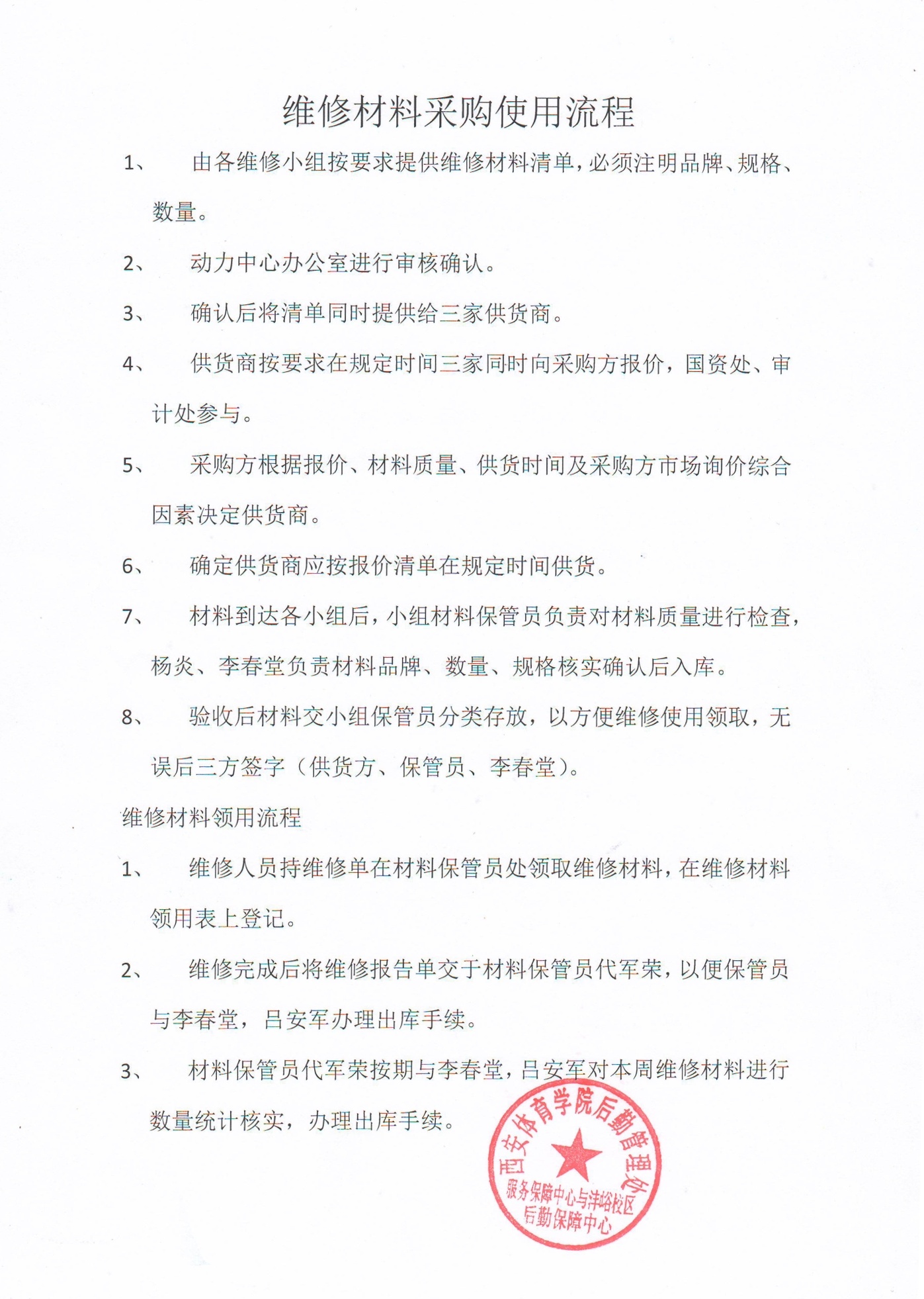 万象城allwincity官网服务保障中心与沣峪校区后勤保障中心维修材料采购使用流程
