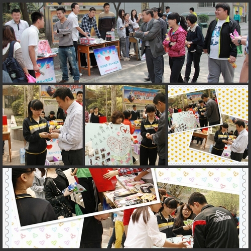 本网讯 4月10日,运动训练系2010级学生在体操馆门口举行爱心义卖活动。全年级十六个班的同学拿出自己的闲置物品进行义卖,并用所得款项捐献给贫困山区儿童。运动训练系主任高新友、副主任黄谦和武洛生参加了此次活动。
