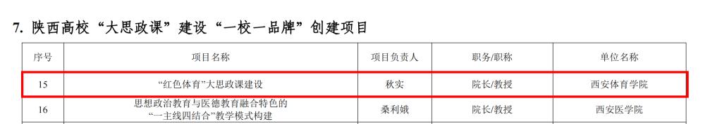 陕西高校“大思政课”建设“一校一品牌”创建项目