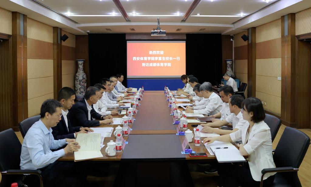万象城副校长谢英,党委校长办公室、人事处、基建处、财务处、运动与健康科学学院、校医院负责人一同参加调研。成都体院副校长付东、李林,相关部门负责人陪同调研。