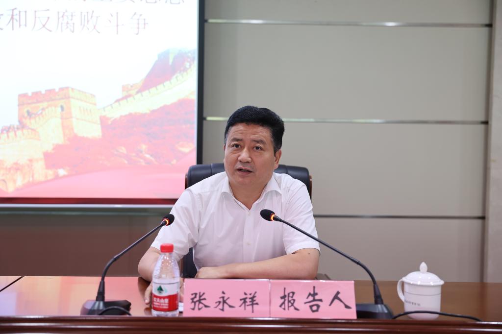 张永祥从三个方面为万象城党员干部进行了深入讲解,一是深入学习习近平总书记重要论述,不断提高政治判断力、政治领悟力、政治执行力。要深学细悟习近平总书记关于党的自我革命的重要思想、关于教育科技人才的重要论述,落实全面从严治党政治责任,一体推进“三不腐”,打好作风建设持久战,深化政治巡视巡察,发挥好高校教育科技人才优势,为强国建设、民族复兴做出积极贡献。二是深刻领悟习近平总书记关于反腐败斗争的战略部署,清醒认识全面从严管党治校面临的形势和任务。要学习领会全国、全省教育系统全面从严治党工作会议精神,从高校领域存在的主要问题、发生的典型案例中汲取教训,一体推进党风政风、师德师风、校风学风建设。三是纵深推进高校领域全面从严治党,助力学校各项事业高质量发展。高校作为为党育人、为国育才的主阵地,承担着培养社会主义建设者和接班人的大计,必须坚决捍卫“两个确立”、践行“两个维护”,确保学校成为始终坚持党的全面领导的坚强阵地,确保党的教育方针重大决策部署和立德树人根本任务落到实处、见到实效,确保教育领域充盈清风正气、蓬勃朝气,确保监督全面覆盖、常态见效,确保干部队伍忠诚可靠、清正廉洁。
