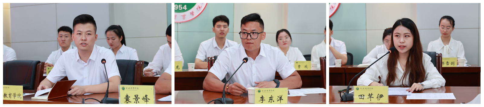 人事处介绍了2024年15名第一批公开招聘新入职专任教师、辅导员及其他专技人员基本情况,3名新入职教师代表李东洋、袁景峰、田芊伊分别做表态发言,表示将满怀热忱、锐意进取,以昂扬状态和坚毅决心投入到新的岗位工作中,不辜负学校的信任与期望,全力以赴为学校发展和学生培养添砖加瓦、贡献力量。