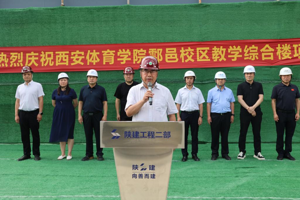 李富生出席封顶仪式,代表学校党政,向辛勤付出的施工单位、设计单位、监理单位、质检单位和给予工程大力支持的鄠邑区委、区政府表示衷心感谢!他指出,教学综合楼是鄠邑校区二期建设的一个标志性工程,是学校实现主体搬迁的重要保障,项目从去年的数九寒天开工,到今年的三伏炎夏封顶,213天战绩来之不易,基建处团队发扬“鄠建铁军”优良作风,勇担重任,能打硬仗,这次他们又刷新了“万象城速度”,相信有这样一支队伍在各参建单位的大力支持下,共同作战,一定能够为建成一流体育大学奠定坚实基础,书写万象城allwincity官网新的辉煌!