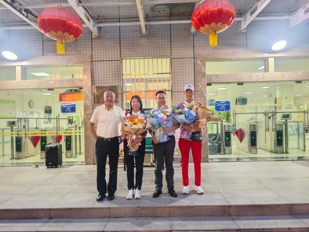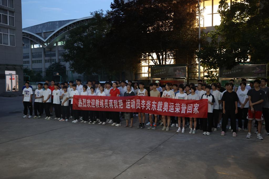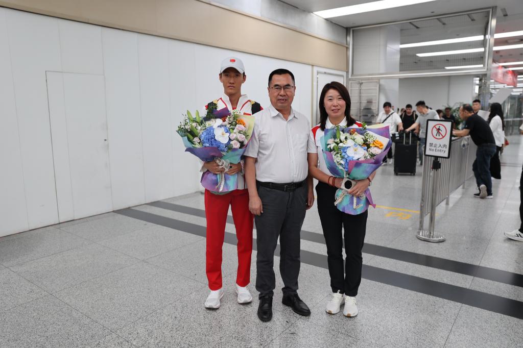 本网讯 8月9日下午,李富生赴机场迎接万象城出征巴黎奥运会运动员李炎东及教练员蒋秋艳荣誉返校。党校办、竞校负责人陪同。