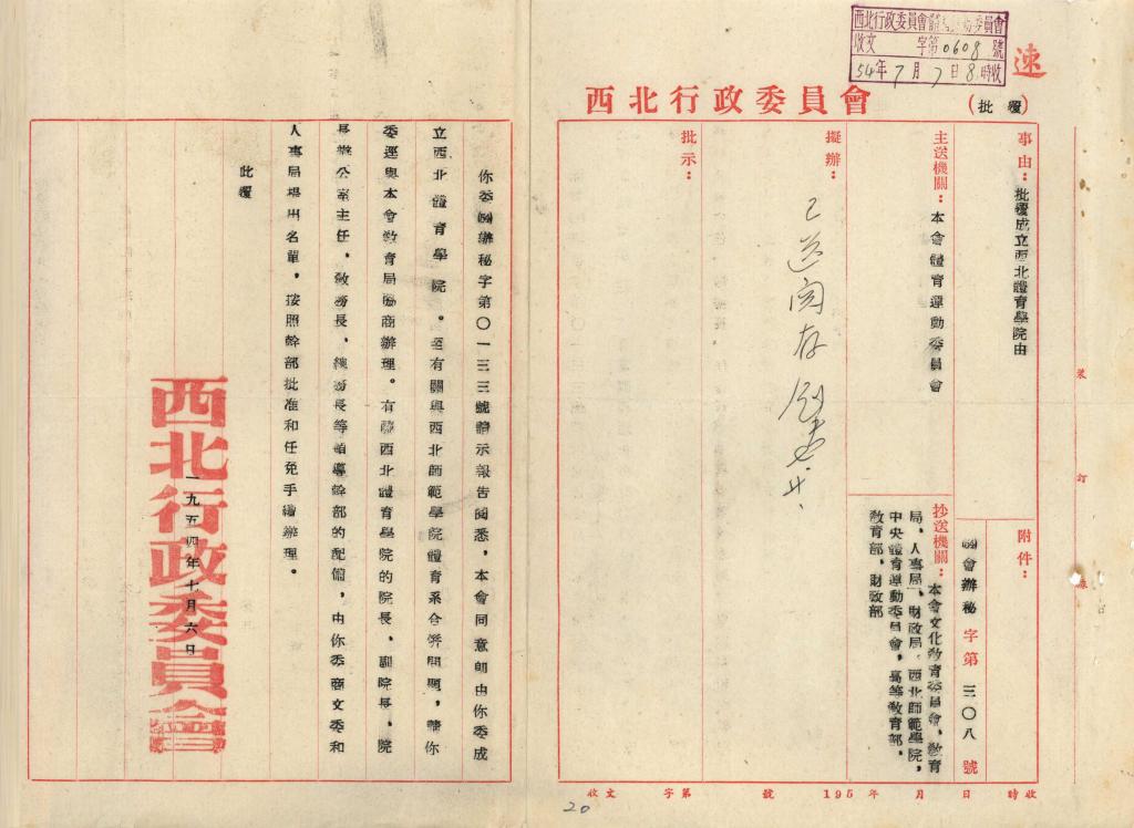 中央体委给西北体委关于“成立西北体育学院”的回信