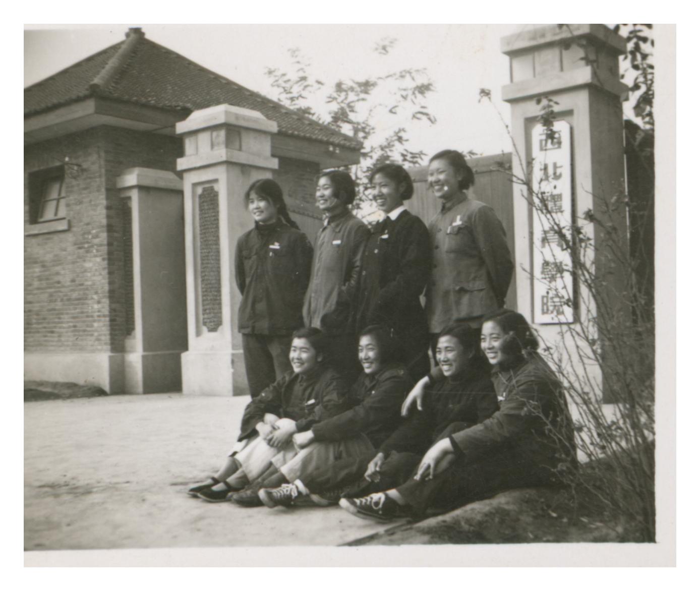 1958年体院学生毕业纪念照,背景楼为1958年建院初期的行政教学楼(现省体育局办公楼)