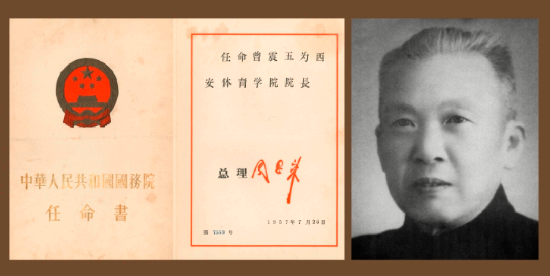 1955年贺龙元帅亲自为西北体育学院圈选新校址(现含光校区校址),鼓励师生“继承和发扬延安精神,艰苦创业,为国家培养出又多又好的体育人才”。