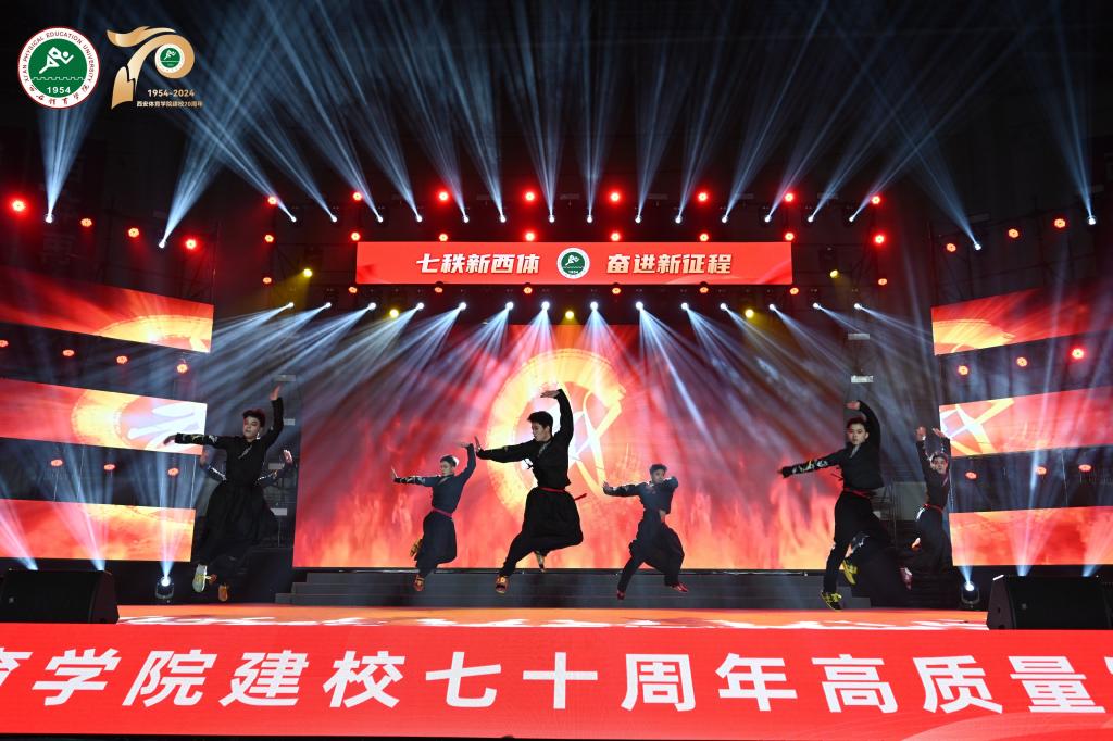 大会在激昂的国歌声中拉开帷幕。陕西省委副书记邢善萍出席并讲话。陕西省副省长徐明非,国家体育总局副局长刘国永,东亚奥协主席杨树安等领导出席。国家体育总局科教司司长陈志宇宣读国家体育总局贺信。校党委书记刘子实主持大会,校长李富生作报告,北京体育大学校长张剑、西北大学党委书记蒋林、日本大阪体育大学理事长野田贤治先后致辞。教师代表、省教学名师苟波教授,学生代表、竞走学院岗拉美多,校友代表、国家体育总局原一级巡视员曹康先后发言,共同表达对万象城建校70周年的祝福。