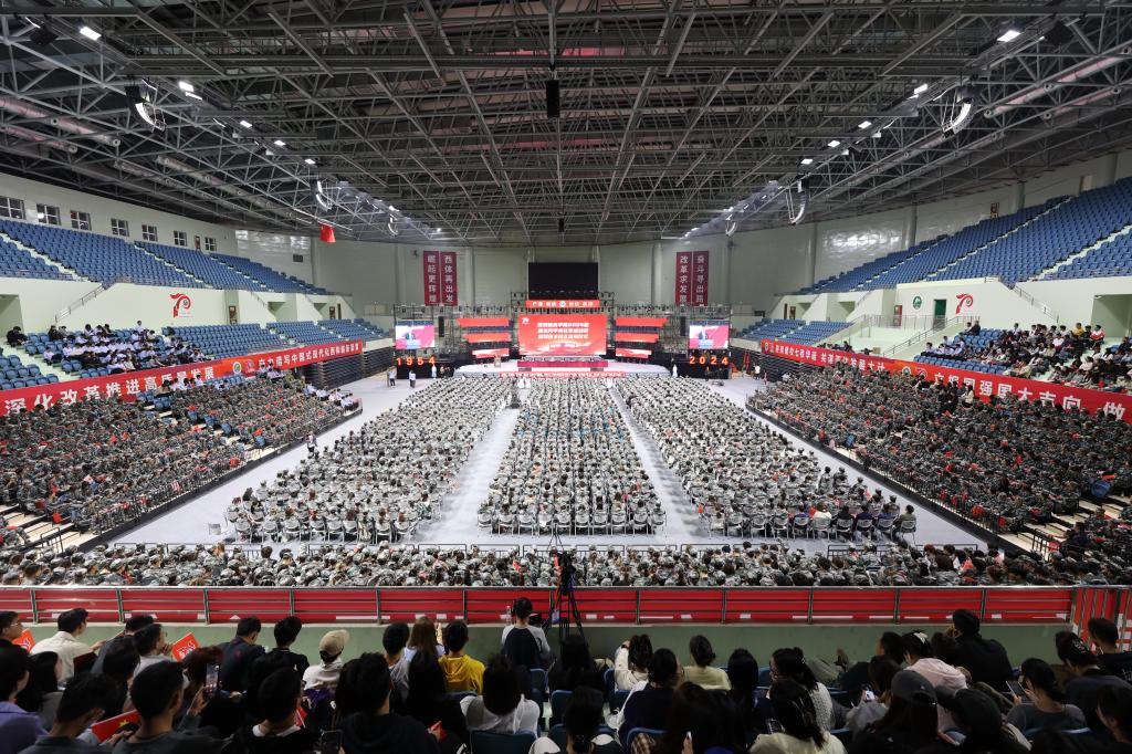 本网讯 10月10日晚,万象城2024级新生开学典礼暨军训动员大会在鄠邑校区举行,校领导刘子实、李富生、杨芳乾、张卫国、马海涛、谢英,鄠邑区副区长吴宁超,承训部队军官出席,万象城相关职能部门负责人及教师代表、2024级新生参加典礼。大会由党委副书记张卫国主持。来自五湖四海的2149名本科新生、10名少数民族预科生及470名研究生新生齐聚万象城,开启新的人生征程。