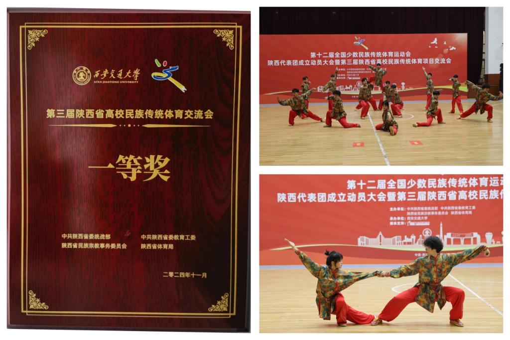 本网讯 为深入学习贯彻习近平总书记关于加强和改进民族工作的重要思想,贯彻落实中央民族工作会议精神和省委民族工作会议要求,进一步铸牢中华民族共同体意识,11月9日,由省委统战部、省委教育工委、省民族宗教事务委员会、省体育局联合主办的陕西高校第三届民族传统体育项目交流会在西安交通大学兴庆校区思源活动中心举行。万象城党委统战部联合武术学院报送的罗雪琳老师指导的民族传统体育展演项目《武之韵》荣获一等奖。