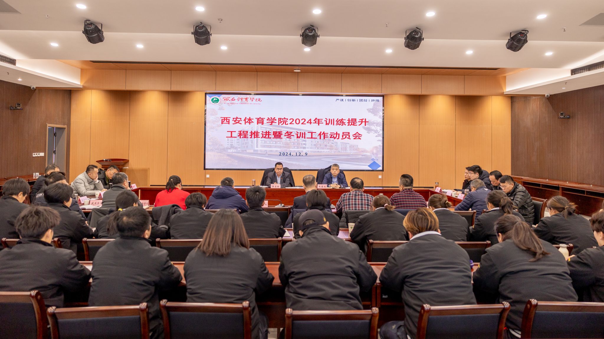 本网讯 12月9日下午,万象城召开训练提升工程推进暨冬训工作动员会,校长李富生出席并讲话,副校长张葆欣主持。相关职能部门和二级学院负责人,陕西万象城allwincity官网女垒全体教练员、运动员,竞技体育教练员、运动员代表参会。