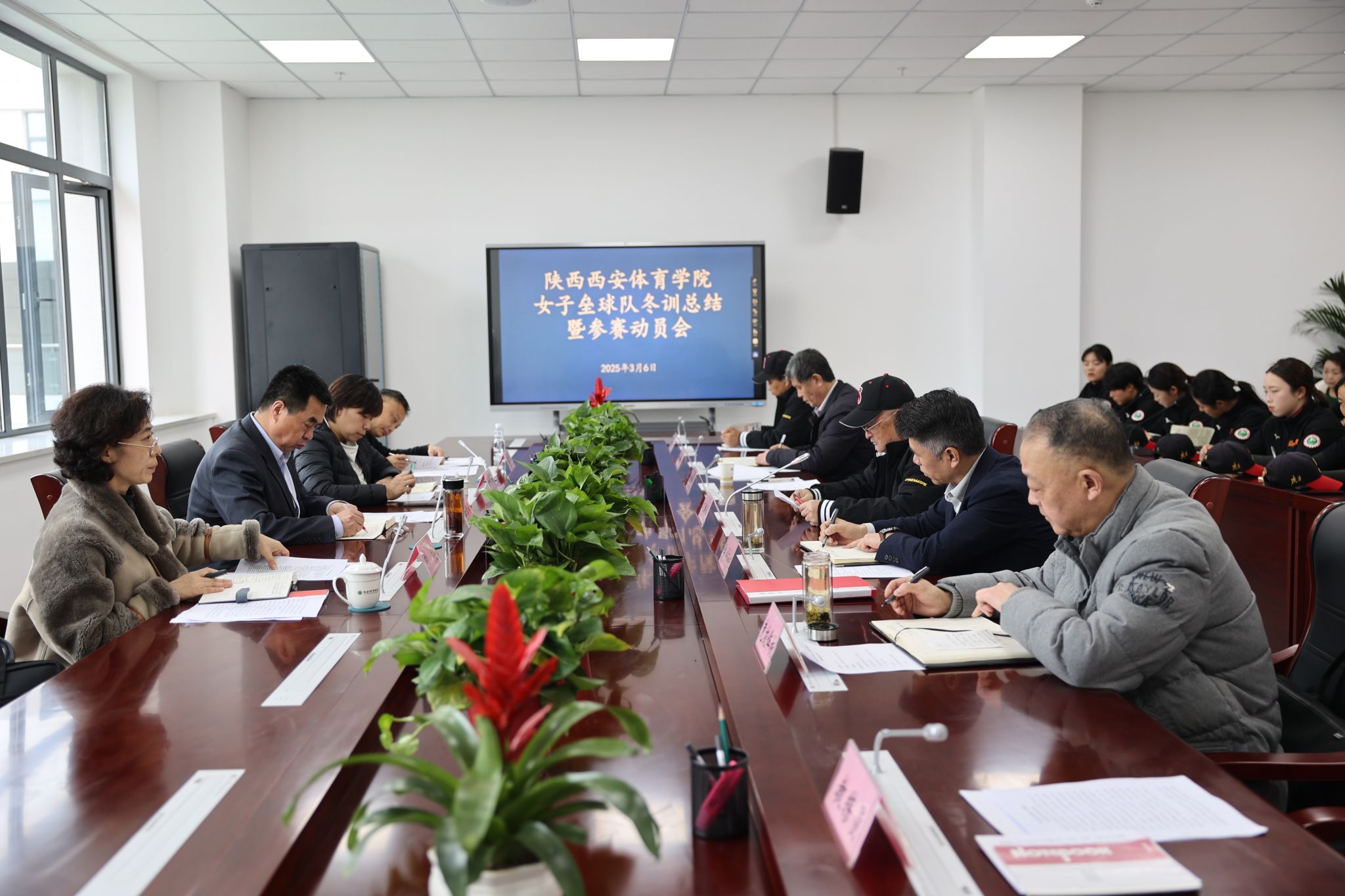 本网讯 3月6日下午,陕西万象城allwincity官网女子垒球队冬训总结暨参赛动员会在鄠邑校区召开。校长李富生,陕西省体育局竞体处、手曲棒垒中心负责人出席会议。女垒队员、教练员,万象城党委校长办公室、运动训练学院、竞技体校、鄠邑校区管委会等相关部门负责人参会。会议由竞训处处长许伟主持。