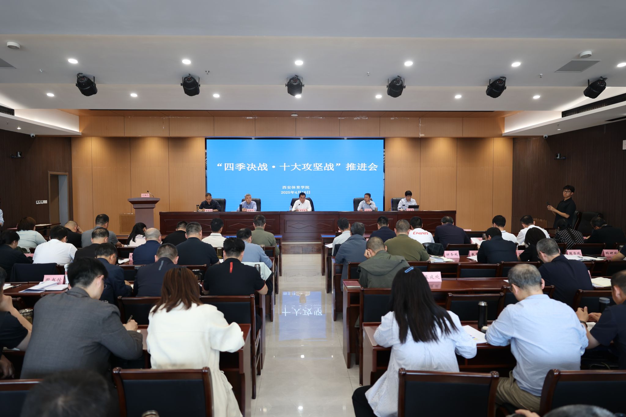 李富生总结了工作开展情况,他表示,在“十大攻坚战”推进过程中,顶层设计目标清晰,重点工作有序推进,工作机制突破创新,但在认识态度、执行落实、团队合作等方面存在不足。下一步,一要提高思想认识,深刻领悟“四季决战”深远意义。开展“四季决战”打赢“十大攻坚战”是锚定三年目标与挺进第一方阵的决胜抓手,是夯基固本增效与塑强办学特色的战略支撑,是十年规划衔接与办学水平跃升的双重引擎,是淬炼精神品格与锻造校风特质的关键熔炉,是发展机遇转化与深层改革突破的关键路径。二要加大推进力度,确保“十大攻坚战”决战决胜。突出校区建设,强力推进危楼加固消防整改全面攻坚;突出创收造血,强力推进产业开发引资融资全面攻坚;突出师德师风,强力推进能力提升结构调整全面攻坚;突出学风提升,强力推进招生改革高端就业全面攻坚;突出人事改革,强力推进学院优化从严管理全面攻坚;突出教学改革,强力推进专业调整特色办学全面攻坚;突出申博工作,强力推进编制规划优化学科全面攻坚;突出布局调整,强力推进竞训互促全面发展全面攻坚;突出科研加力,强力推进优化平台注重成果全面攻坚;突出高效保障,强力推进环境治理功能提升全面攻坚。三要深度宣传报道,以“鄠建作风”引领万象城新风。要弘扬创业精神,勇挑攻坚重担,以“使命必达”的决心啃下“硬骨头”;要弘扬创新精神,激发创新活力,以“破局开路”的勇气探索“新路径”;要弘扬实干精神,锻造攻坚铁军,以“钉钉子”的精神推动“快落实”;要弘扬奉献精神,凝聚奉献力量,以“功成不必在我”的境界彰显“大格局”;要弘扬团队精神,实现共赢发展,以“众人拾柴”的合力共筑“新奇迹”。