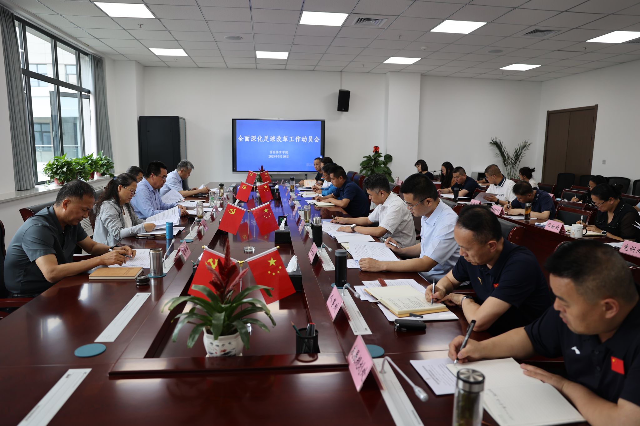 本网讯 5月30日下午,校长李富生主持召开全面深化足球改革工作动员会。党委副书记、纪委书记、监察专员杨芳乾,副校长谢英、张葆欣、雷振华出席,有关牵头部门、二级学院负责人等参会。