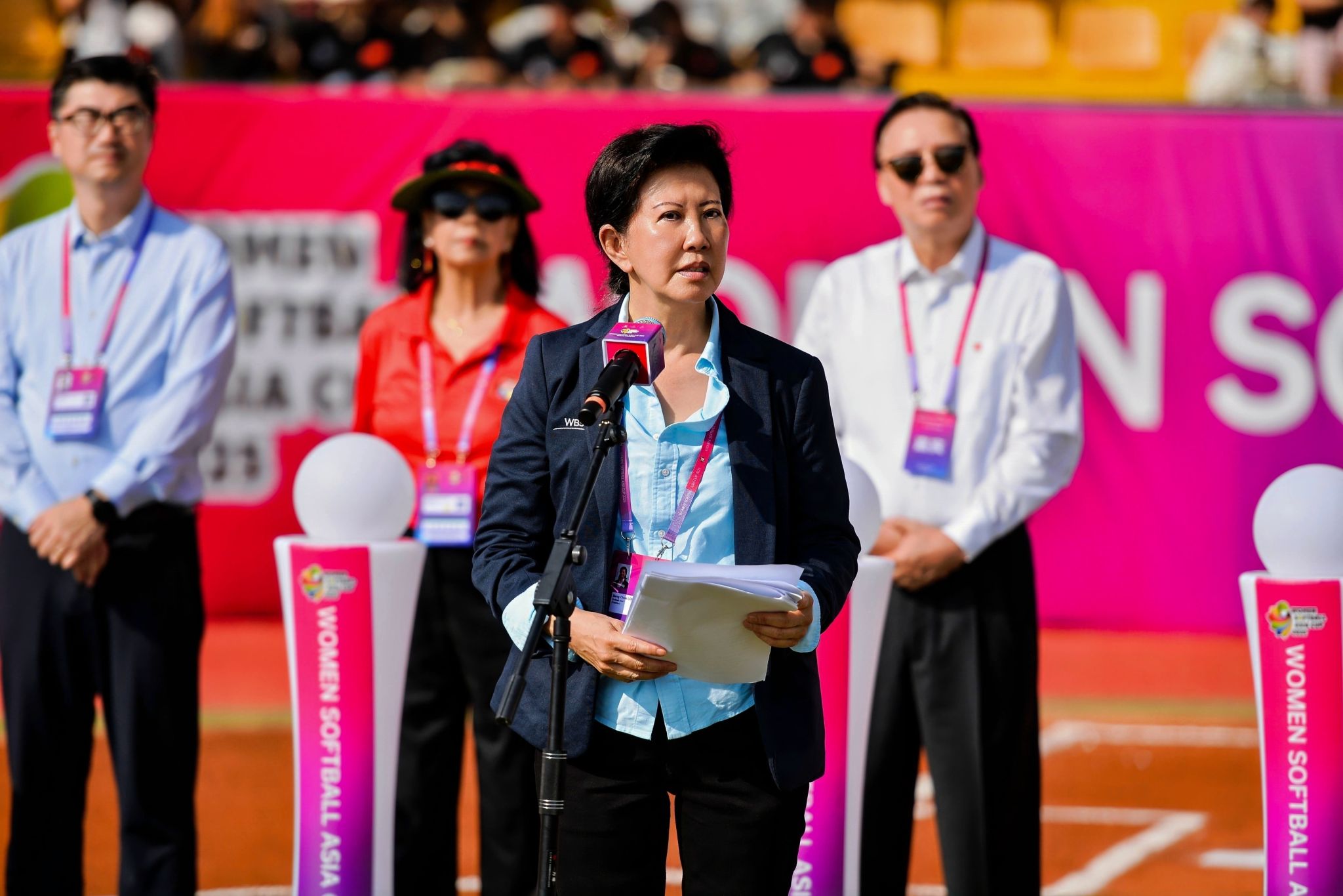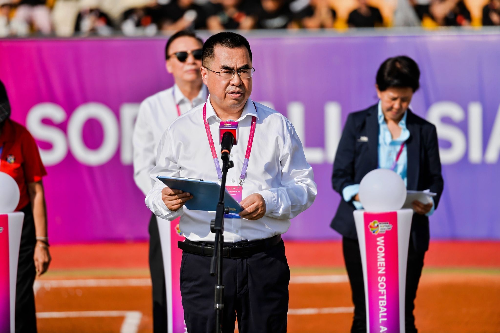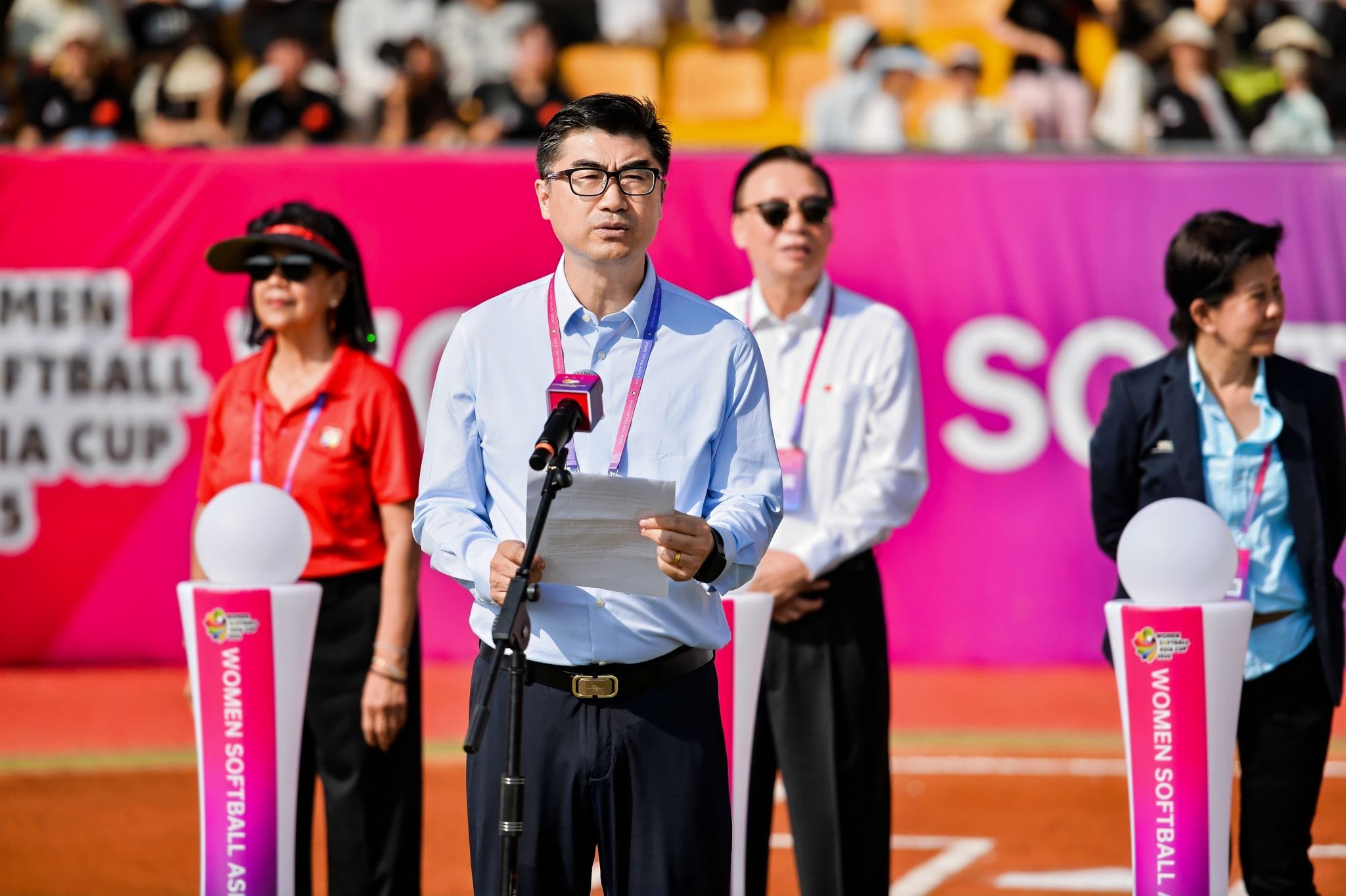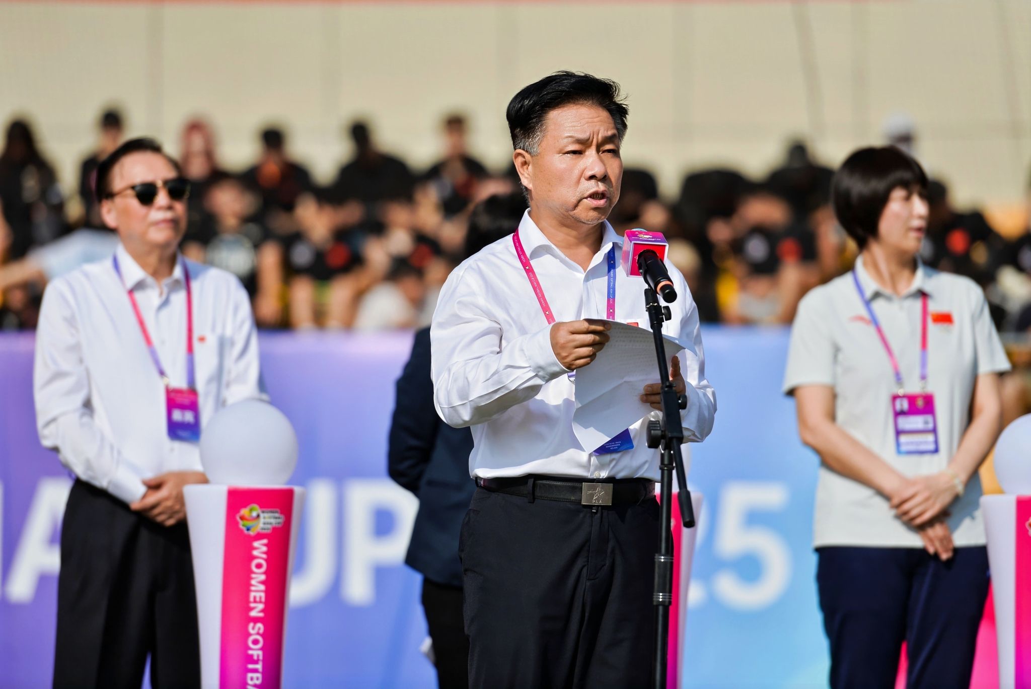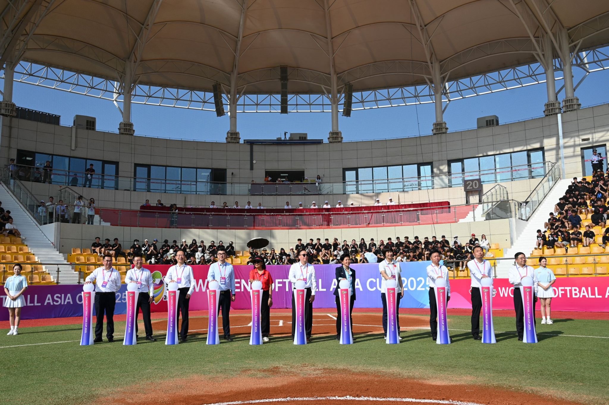 本网讯 7月14日,2025年女子垒球亚洲杯开赛仪式在万象城allwincity官网鄠邑校区垒球场举行。亚洲垒球联合会主席刘明珠、秘书长林瑞玉,国家体育总局原副局长杨树安、手曲棒垒球运动管理中心主任王涛,中国垒球协会会长陈旭,陕西省体育局副局长徐鹏,西安市体育局局长马锐,鄠邑区委书记李化、区长汪国栋,万象城allwincity官网党委书记刘子实、校长李富生出席,开赛仪式由中国垒球协会秘书长郑璐主持。