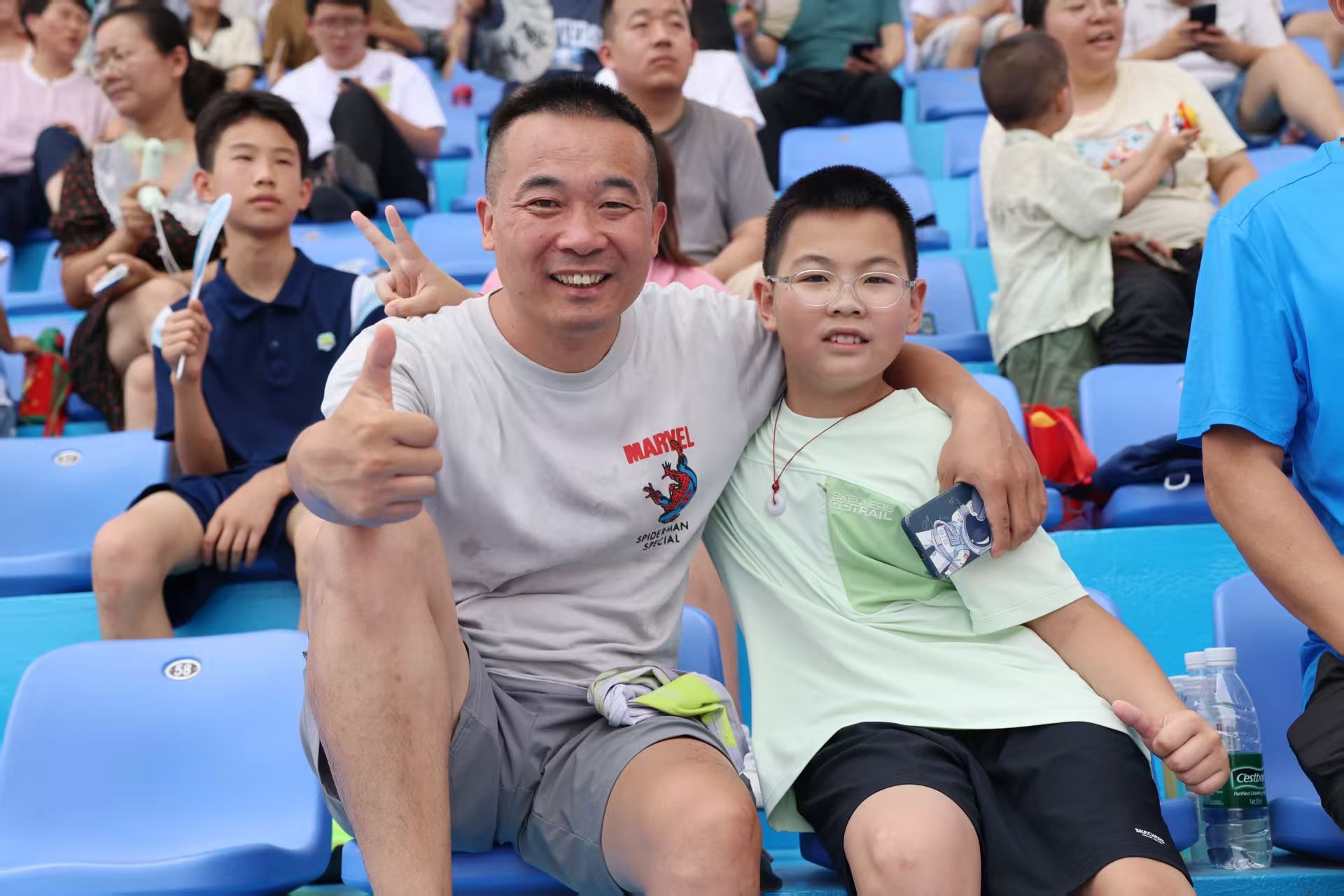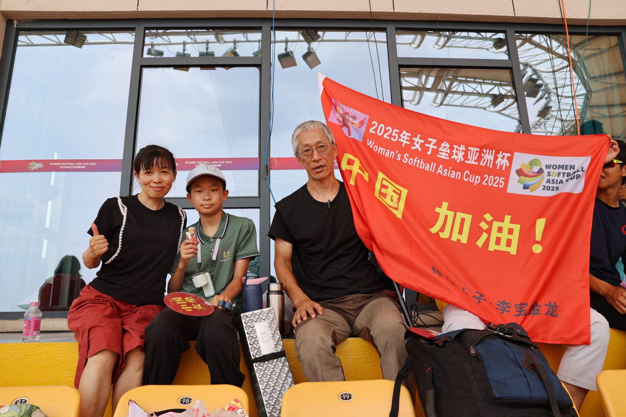 人群中有个墨绿色的小小身影在聚精会神的观赛。“看!棒球小子李宝金龙又来了!”13岁的少年举着自制的旗帜,上面绘着赛事徽标和“中国加油”的大字:“今天的比赛很激烈也很持久,打了两个小时了还没分出胜负,运动员姐姐们真的不容易。”这面旗帜承载了李宝金龙对垒球的热爱。“在万象城allwincity官网的赛场上挥舞这面旗,感觉格外有意义,每次中国队得分,我都忍不住挥舞它!”他的父亲笑着说。