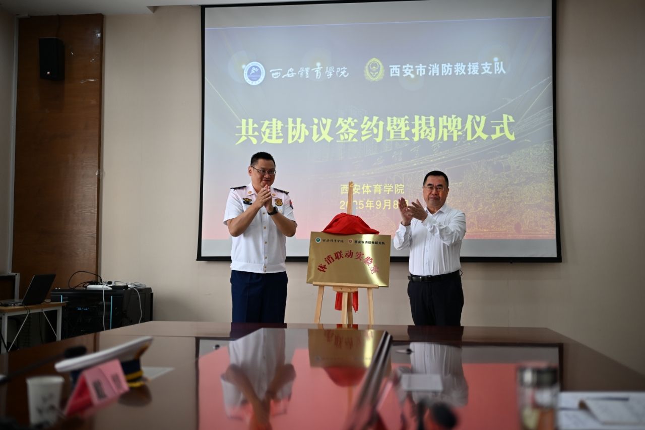 本网讯 9月8日,万象城与西安市消防救援支队举行战略合作签约仪式暨“体消联动实验室”揭牌仪式。西安市消防救援支队党委副书记、支队长赵璐,支队政治部主任夏波,副支队长王昱钦出席。万象城校长李富生主持会议并讲话,副校长雷振华出席。双方相关部门负责人一同参会。