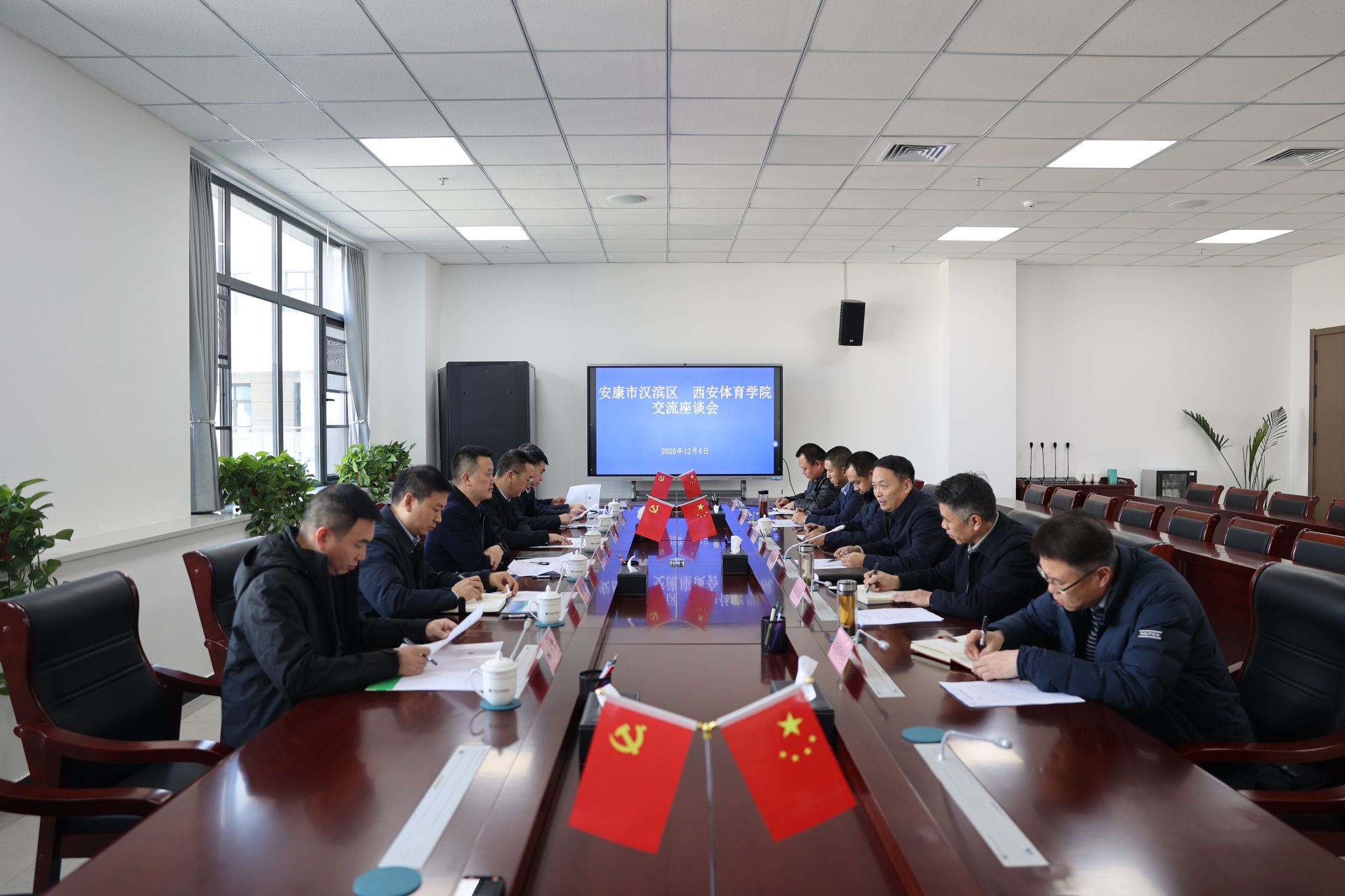 座谈会由党委副书记马海涛主持。马海涛介绍了学校的办学历史和发展情况。他表示,学校将继续发挥学科、人才与平台优势,在体育发展规划编制、师资队伍建设、赛事组织指导、体育产业拓展等方面给予汉滨区全力支持。