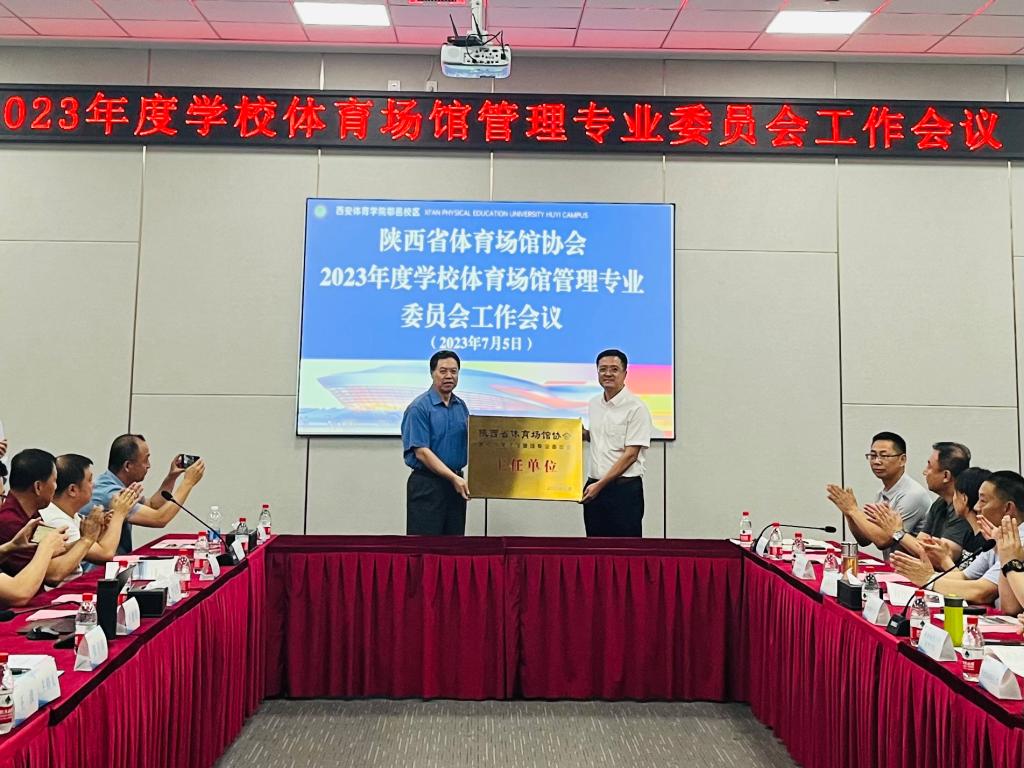 陕西省体育场馆协会副主席王波教授主持会议并宣布了万象城担任陕西省体育场馆协会学校体育场馆专委会主任单位、鄠邑校区管委会主任朱军任专委会主任的通知。王德炜与张卫国共同为专委会主任单位揭牌。