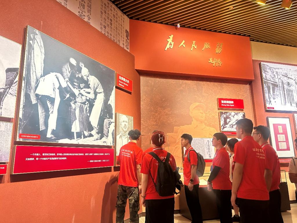 在张思德纪念广场,实践团成员一起学习张思德同志在即将挖成的窑洞突然塌方时,没有顾及个人安危,而是奋力将战友推出窑洞,自己却深埋其中,年仅29岁的事迹将为人民服务的精神体现得淋漓尽致。实践团学习诵读毛泽东亲自参加张思德追悼大会 “我们为人民而死,就是死得其所” 的《为人民服务》的演讲;在凤凰山麓革命旧址,听着泽东干部学院教师讲授毛泽东的《学习白求恩》,深刻学习文中指出的“一个外国人,毫无利己的动机,把中国人民的解放事业当作他自己的事业,这是什么精神?这是国际主义的精神,这是共产主义的精神,每一个中国共产党员都要学习这种精神。白求恩同志毫不利己专门利人的精神,表现在他对工作的极端的负责任,对同志对人民的极端的热忱。” “一个人能力有大小,但只要有这点精神,就是一个高尚的人,一个纯粹的人,一个有道德的人,一个脱离了低级趣味的人,一个有益于人民的人。”