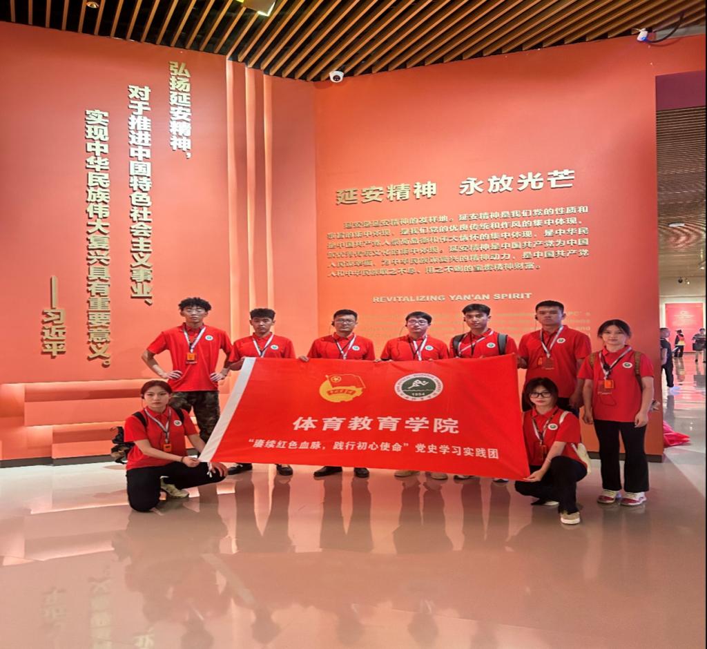 体育教育学院“赓续红色血脉 践行初心使命”党史学习实践团师生一行10人,跟随团中央延安基地走进延安文艺纪念馆、鲁迅艺术文学院、中国人民抗日军事政治大学纪念馆、梁家河知青旧址、北京知青博物馆、延安革命纪念馆、王家坪革命旧址、枣园旧址、张思德纪念广场、凤凰山麓革命旧址、中共中央西北局纪念馆等革命旧址及延安学习书院等地追忆延安革命精神,传承红色基因。期间社会实践团开展体育支教、社区体育运动指导和宣传,学习白求恩精神、学习贯彻习近平总书记五四青年节寄语精神,重温《黄河大合唱》《抗大校歌》,诵读《为人民服务》以及“自己动手 丰衣足食”等体验教学,并同全国其他高校进行社会实践交流。