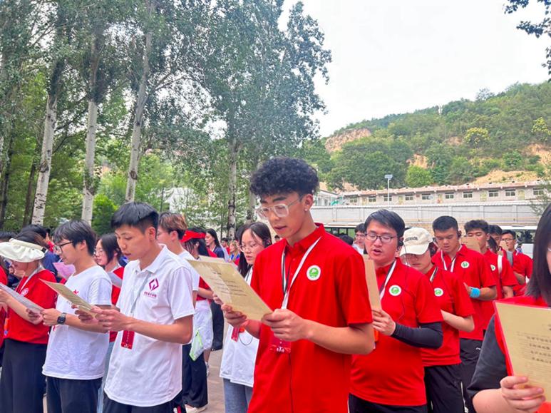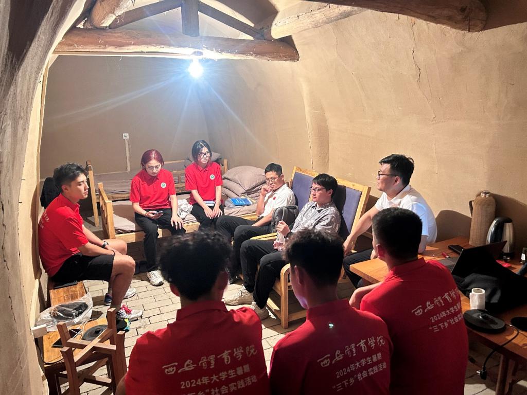 实践团住在延安的窑洞里,沉浸式感受“在最小的指挥所里指挥了世界上最大的人民战争” 的革命圣地,站在历史的交汇点,感悟着延安精神,追寻着革命的脚步,红色血脉洗涤着身心。在延安市委党校基地以“膝盖就是课桌,课桌就在膝盖上”的形式,学习西安交通大学张振老师带来的《青春为中国式现代化挺膺担当—学习贯彻习近平总书记五四青年节寄语精神》,体会着当年开展大生产运动“自己动手 丰衣足食”的劳动教育,感受着自力更生、奋发图强的精神内核,未来的强国事业更需要精神的力量进一步指引青年砥砺前行。延安精神永放光芒!