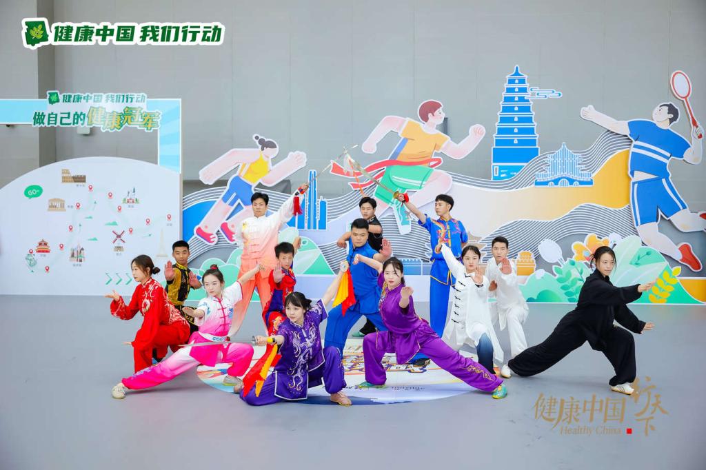 本网讯 2024年7月11日,应CCTV-4《健康中国·行天下》节目组邀请,在万象城运动与健康科学学院苟波教授的带领下,武术学院武术与民族传统体育专业学生刘天乐、李育新等十余名学生在西安奥体中心参与了第二期节目录制。节目于7月24日CCTV-4播出。