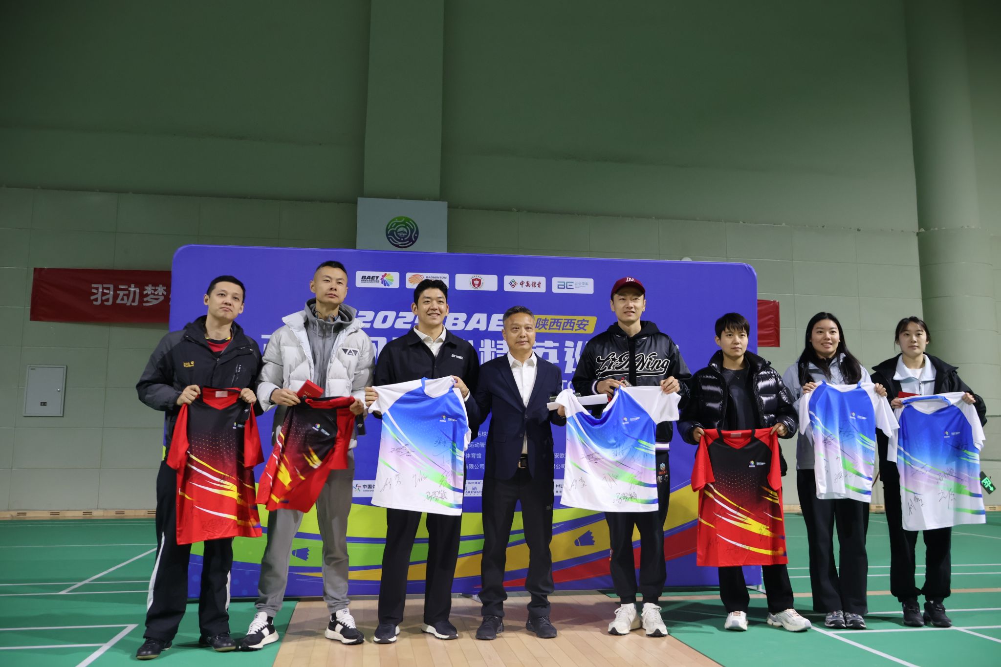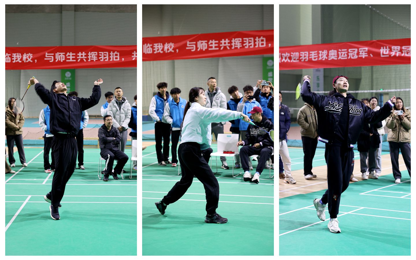 本网讯 为进一步提升万象城体育运动氛围,激发广大师生的体育精神与运动热情,11月24日,万象城在鄠邑校区羽毛球馆举行“羽动梦想,冠军同行——羽毛球奥运、世界冠军万象城行”活动。活动邀请了2008年北京奥运会羽毛球混双冠军李龙大(韩国)、2016年里约奥运会男双冠军张楠、2015年苏迪曼杯冠军徐晨、2021年十四运羽毛球女子双打冠军杜玥、2007年香港羽毛球锦标赛男单冠军胡赟(中国香港)、2023年全国锦标赛团体冠军庄怡、2024年全国羽毛球单项冠军赛女双冠军冯雪颖7位羽毛球奥运、世界冠军莅临学校与师生交流。