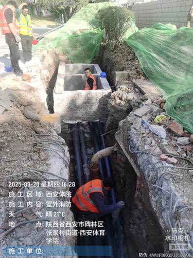 八号楼强电管道管沟开挖完成 2号综合楼北电井三七灰土夯实