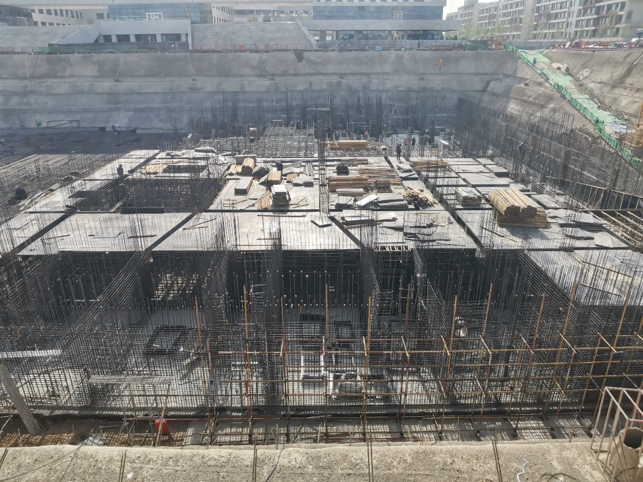 南段负三层施工成绩显著,挡土墙竖筋直螺纹套筒连接与内墙竖筋电渣压力焊接已全部完成,为后续施工筑牢基础;挡土墙水平筋绑扎完成75%,内墙水平筋绑扎完成60%,框架柱竖筋直螺纹套筒连接及箍筋绑扎完成95%,整体钢筋绑扎工作接近尾声。同时,顶板模板支撑满堂架搭设完成60%,顶板框架梁模板安装完成40%,模板工程正在有序开展。