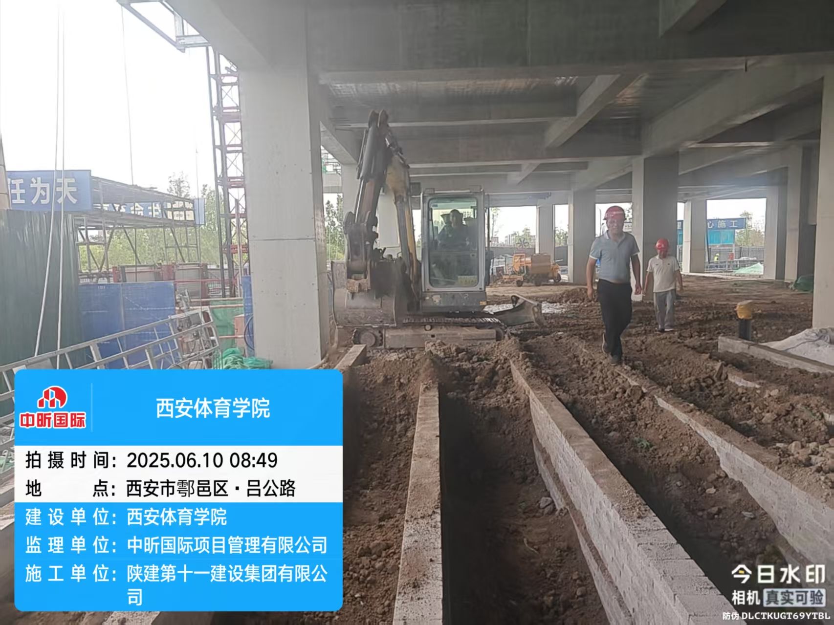 截止6月10日,鄠邑校区风雨操场施工现场秩序井然,建设、监理与施工单位紧密协作、高效衔接,场地内部多作业面施工同步推进。