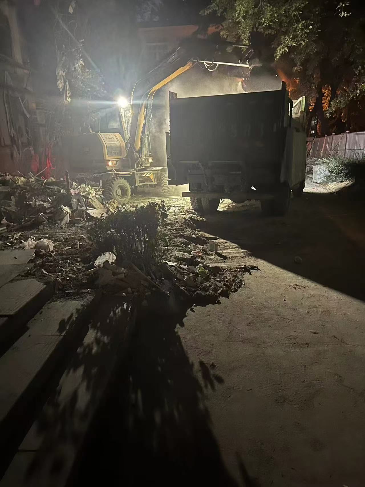 在垃圾清运环节,施工团队高效组织夜间作业 ,利用大型清运车辆,克服夜间施工不便,对施工区域垃圾进行集中清理,保障场地整洁,为后续施工创造良好条件。