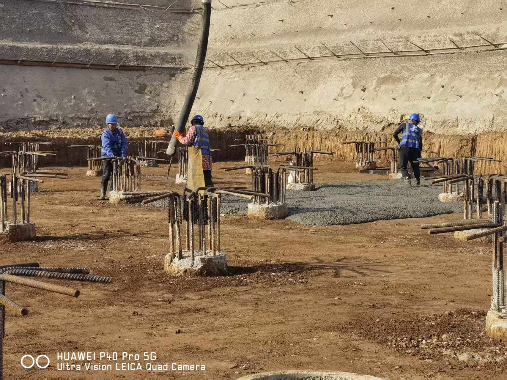 2025年3月21日,人防工程基层开始10公分混凝土垫层开始施工。