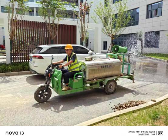 为落实“杜绝污染、绿色施工”,项目负责人韩永同志,要求项目组按期完成施工现场生态环保整治工作。后续收尾工作中,要严格按照国家标准要求,每日定期进行液雾降尘,做好扬尘抑制处理。