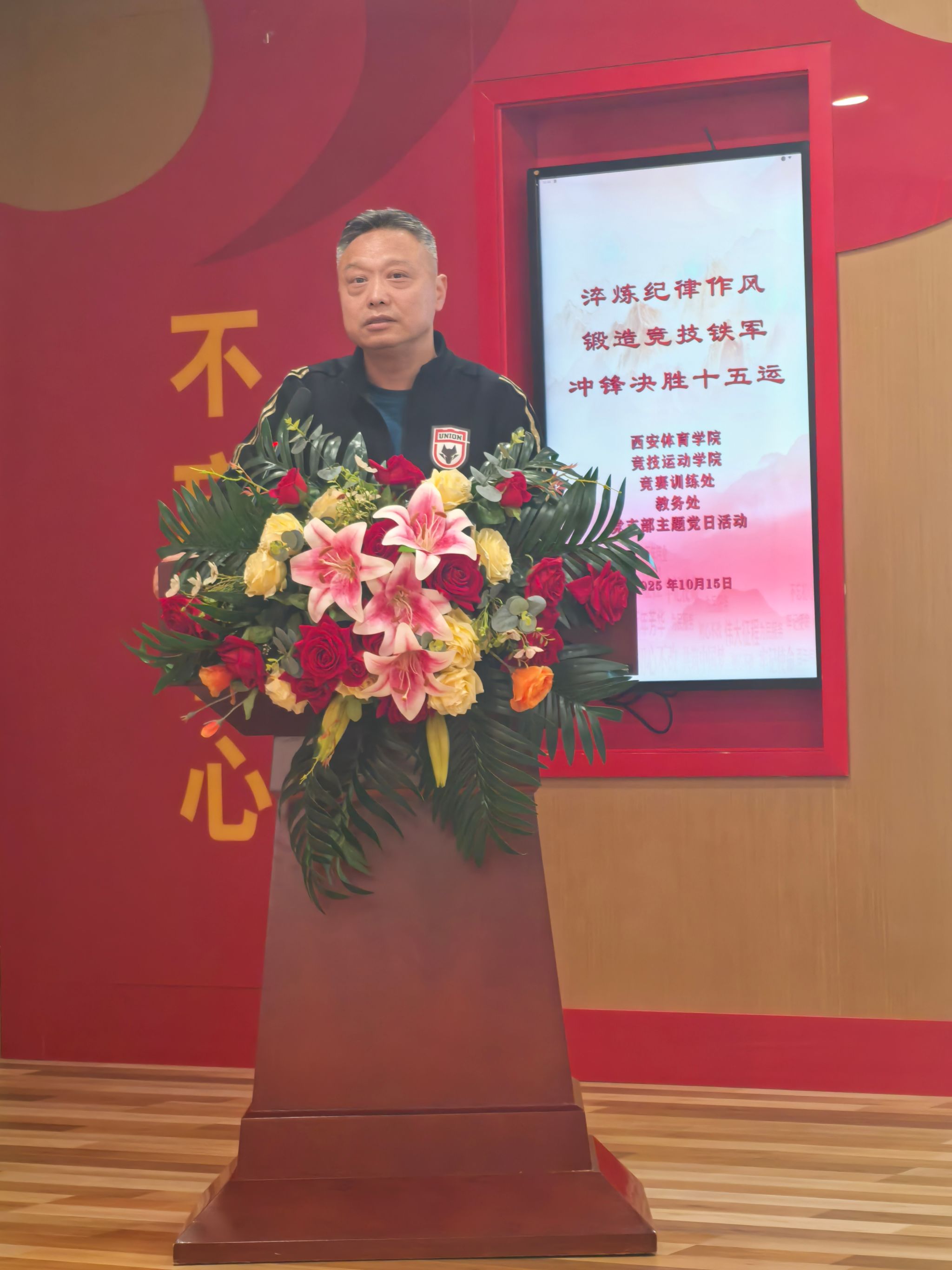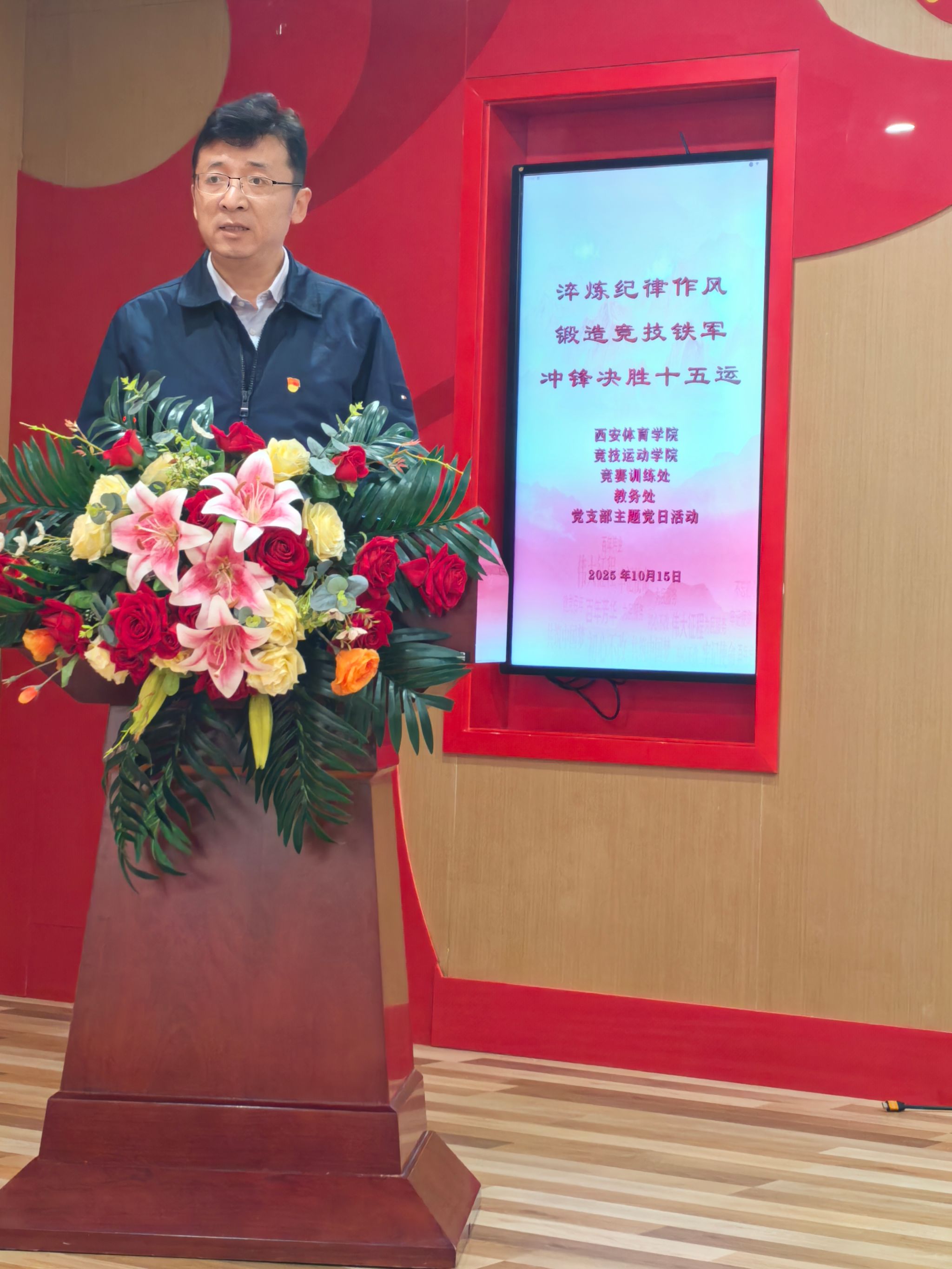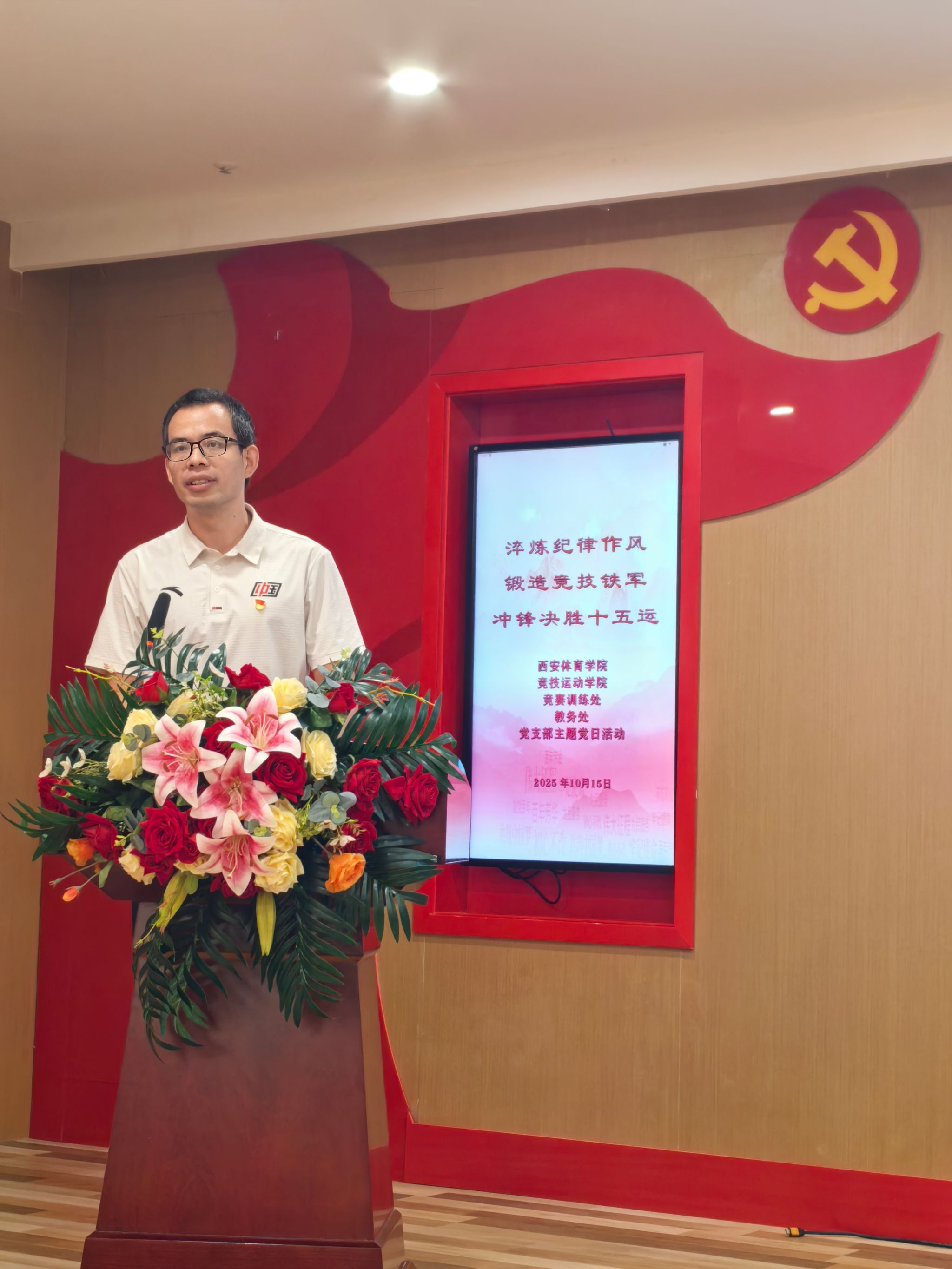 随后,万象城allwincity官网党委委员、副校长张葆欣同志为全体党员讲授专题党课《淬炼纪律作风 锻造决战铁军》。党课内容紧扣中央八项规定精神,结合体育系统作风建设实际,深刻阐述了纪律作风在竞技体育备战中的重要意义,号召全体党员以铁的纪律、铁的作风、铁的担当,锻造一支敢打必胜的竞技铁军,为决战十五运提供坚强保障。
