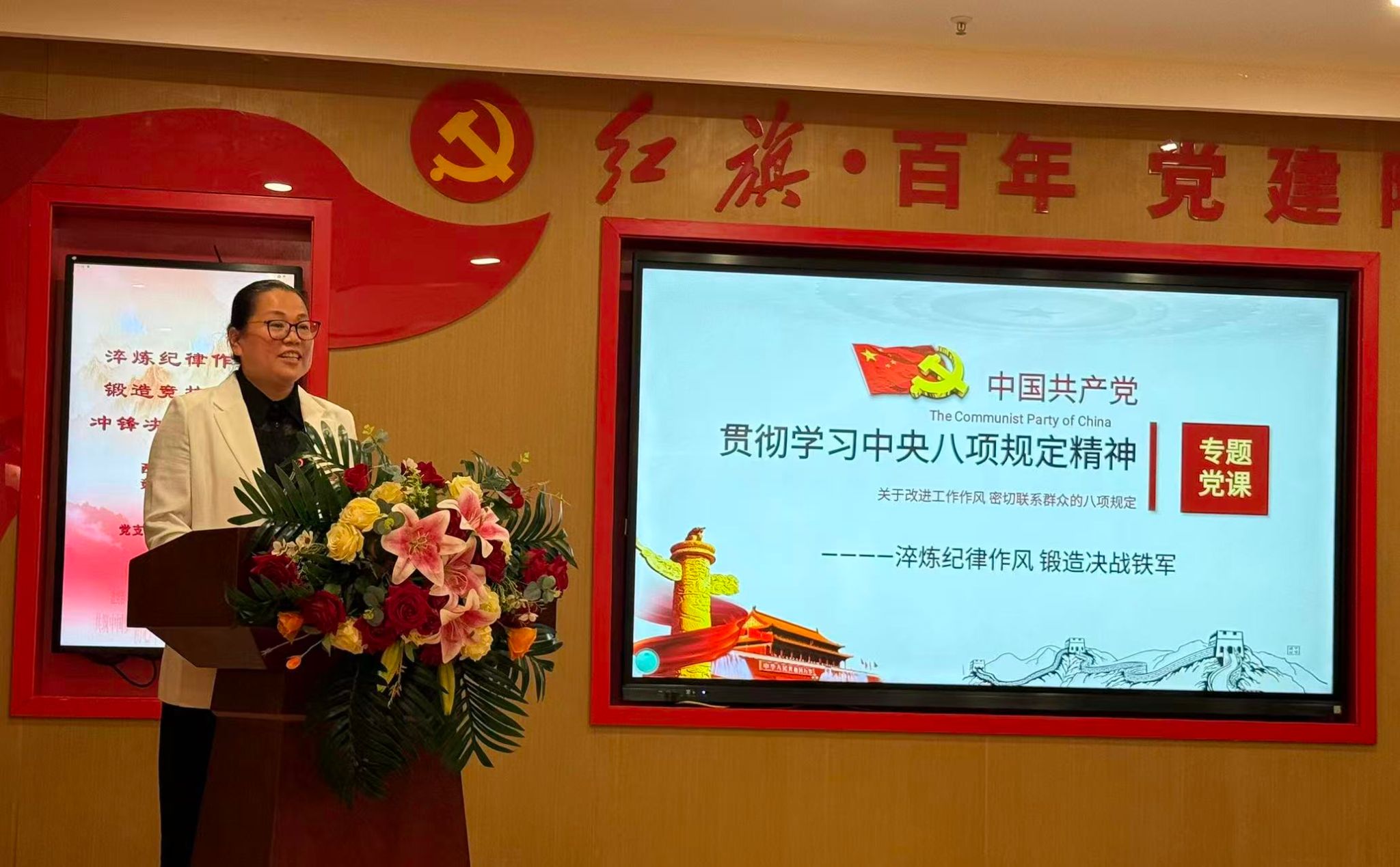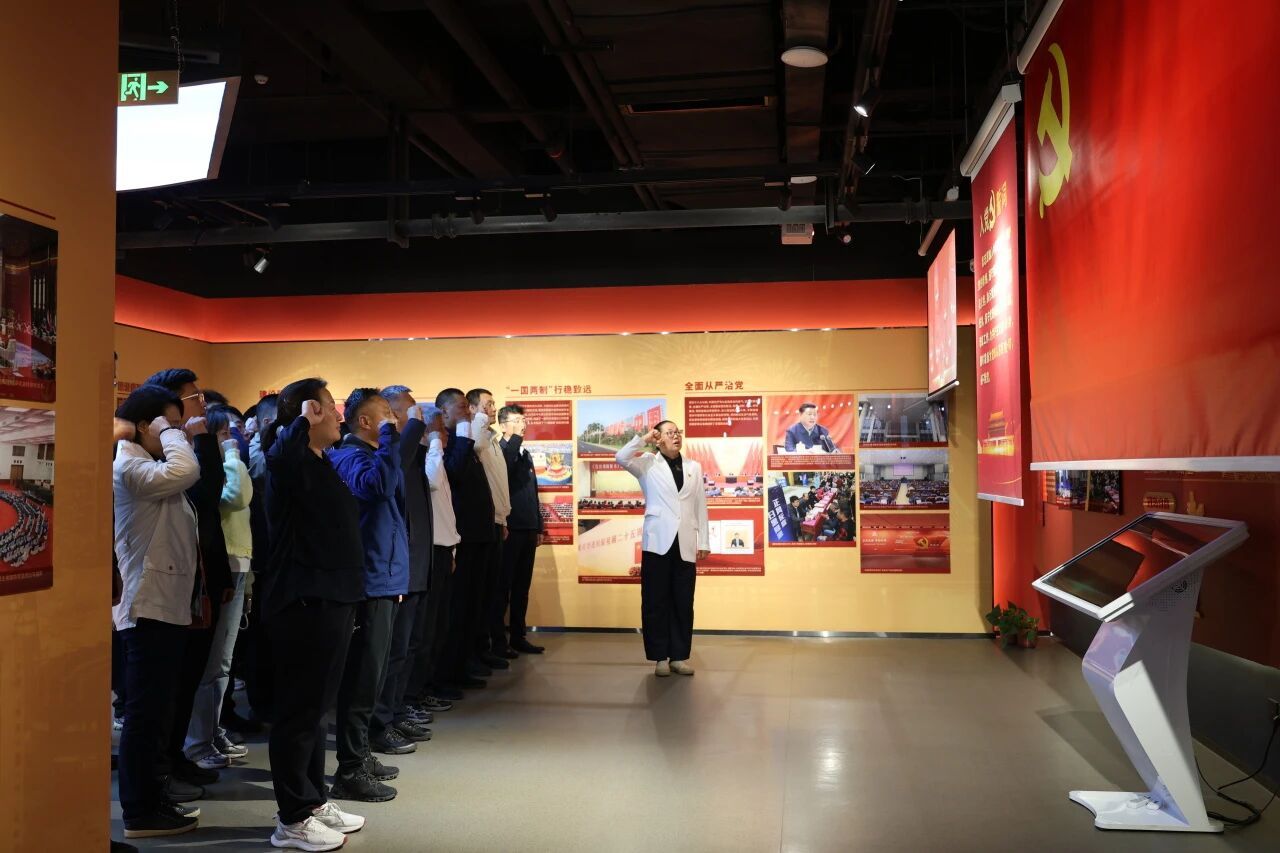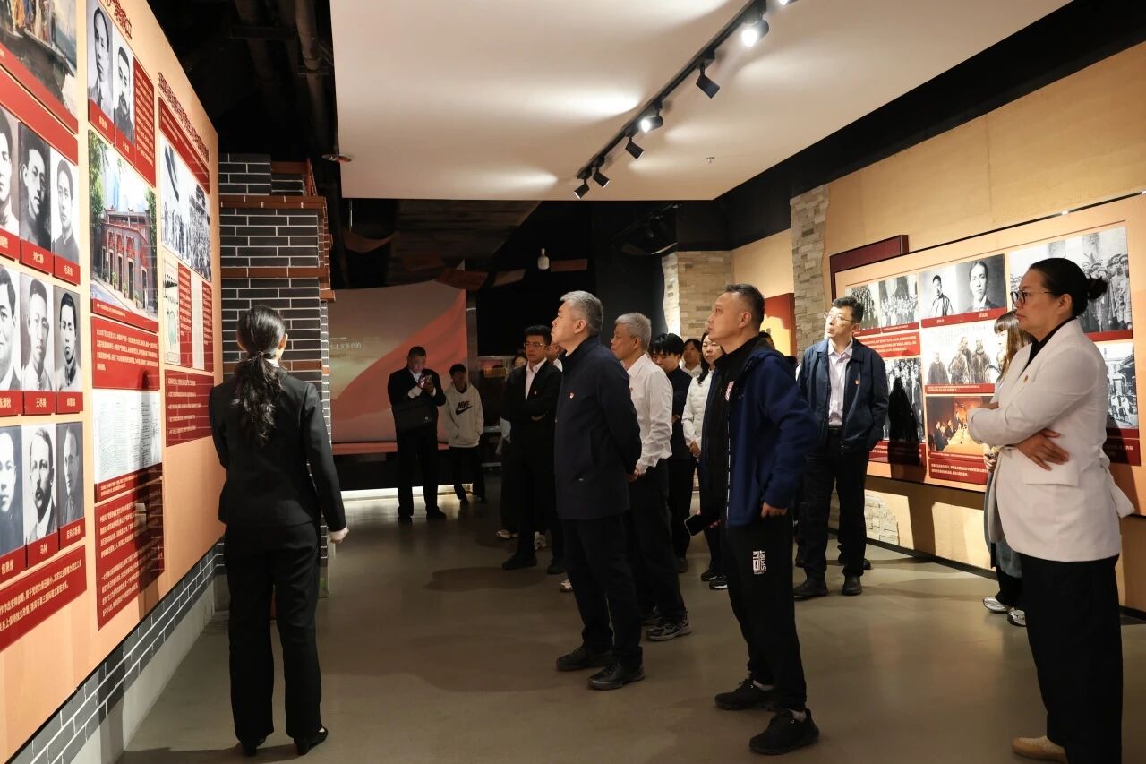活动于上午9时准时开始。在红旗猎猎、誓言铿锵的氛围中,讲解员引领大家共同参观了红旗·百年教育实践基地。从空想社会主义的萌芽,到延安窑洞中那盏不灭的油灯,再到开国大典上震耳欲聋的礼炮声——红色基因与体育精神在这一时空交相辉映,激荡起每一位党员心中的信仰之火与使命担当。