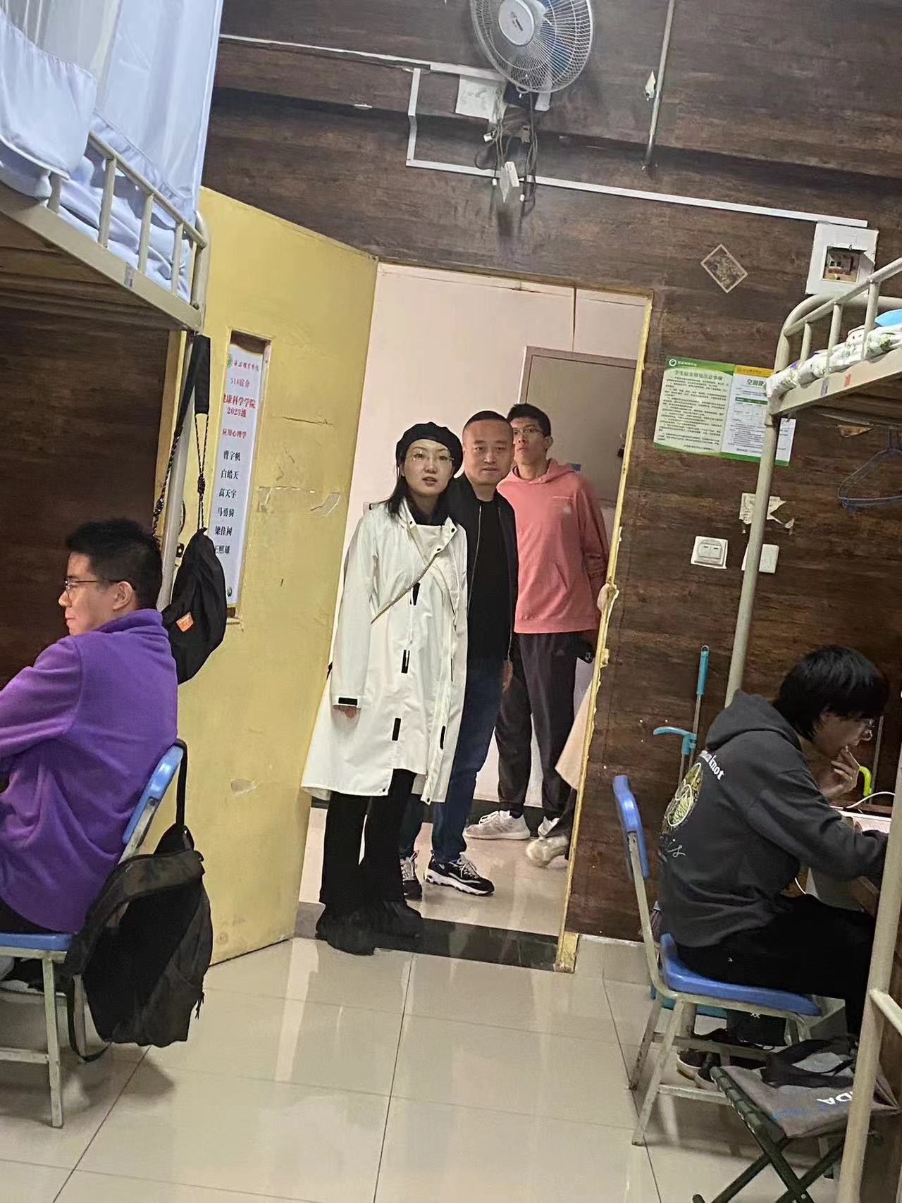 张鹏华老师仔细询问了同学们有关宿舍环境、安全管理、卫生条件等情况,叮嘱同学们在当下同学们学习任务繁忙之时,整洁卫生的宿舍环境尤为重要,尤其是现在还处在冬季传染病高发阶段,务必要加强寝室卫生的打扫,收拾好内务,勤通风。