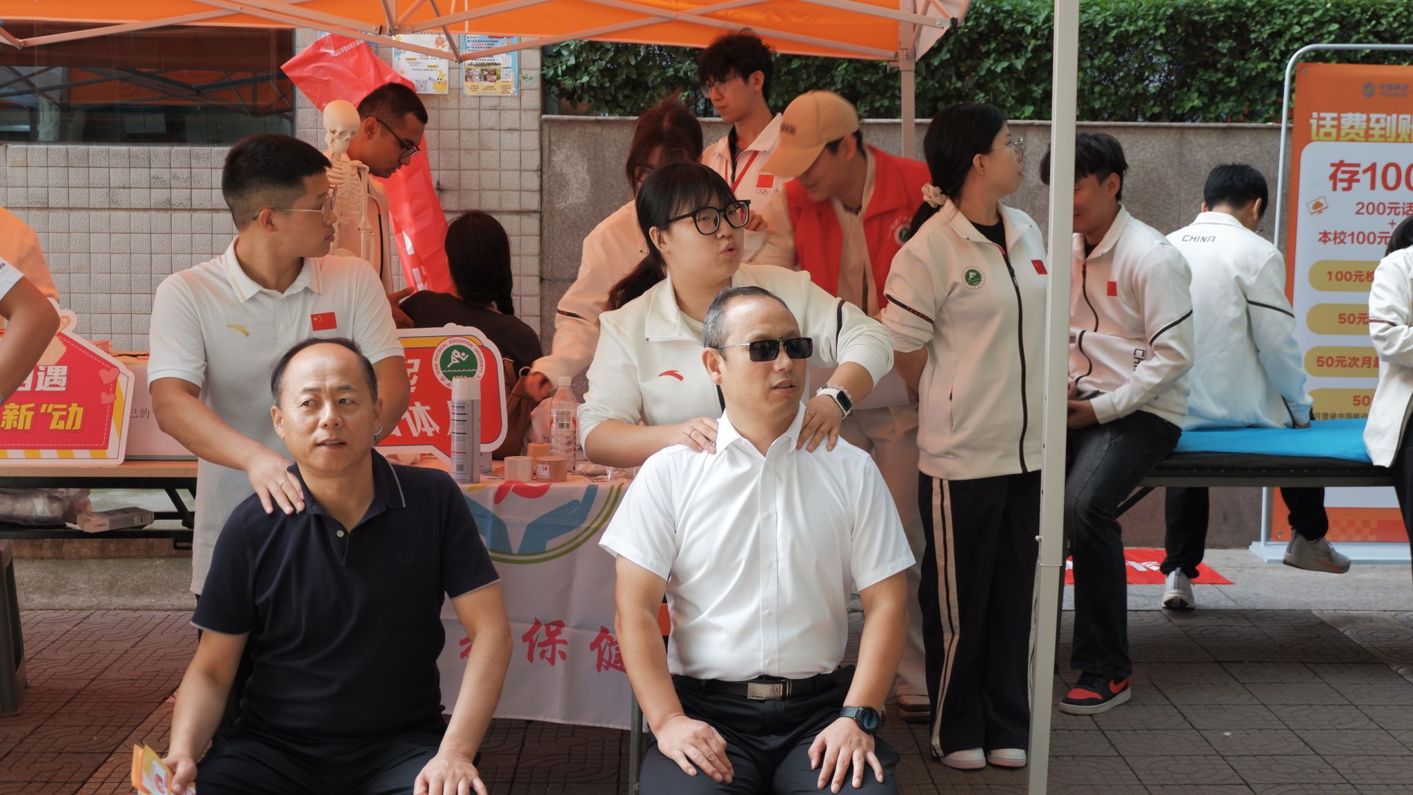 我院特色社团康复保健协会也为学生、家长们提供按摩服务,充分展示社团特色,让新同学对本院社团产生极大兴趣。