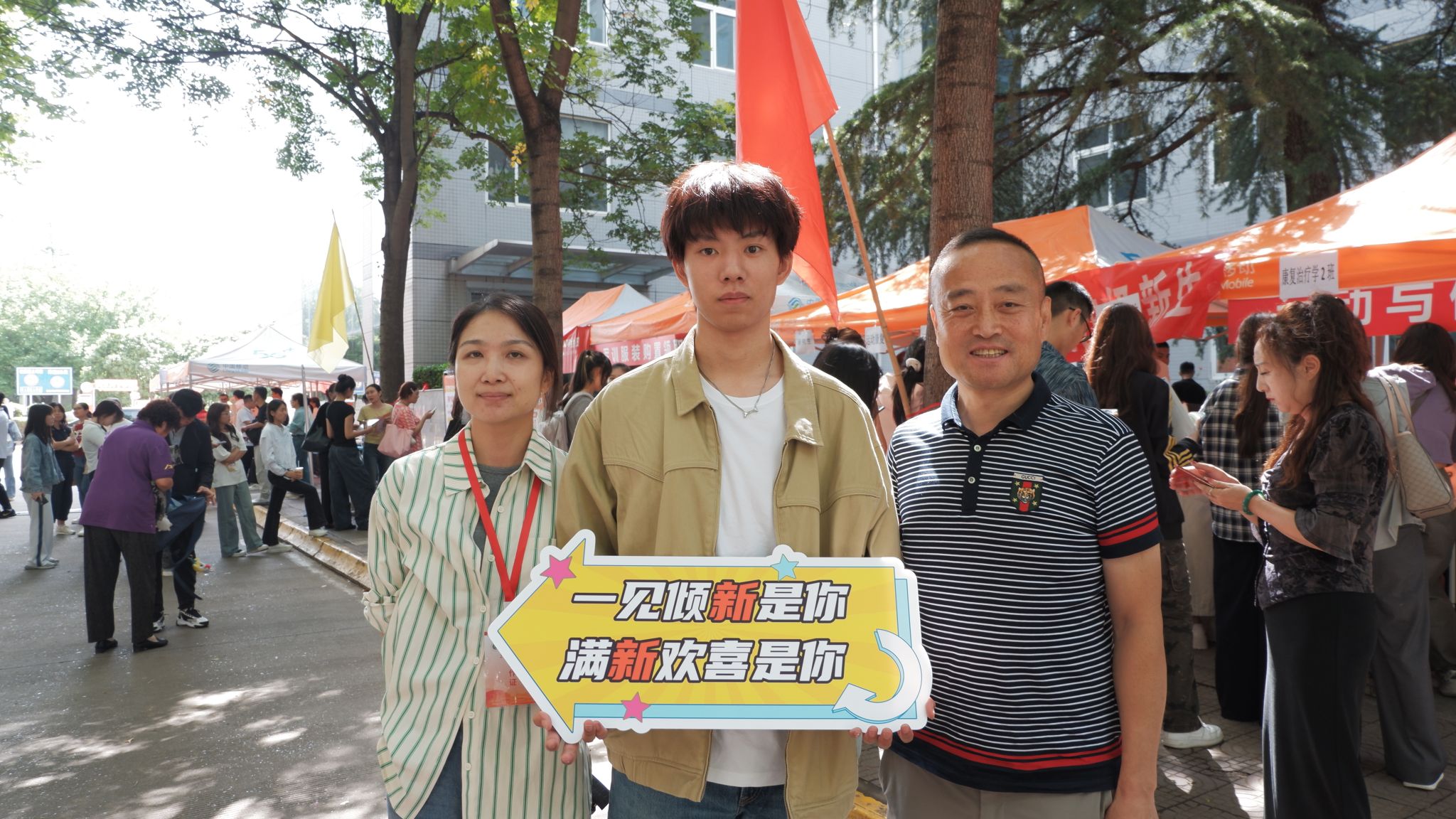 报到期间,运动与健康科学学院党委书记张鹏华,运动与健康科学学院院长刘军,运动与健康科学学院副院长马艳、副院长杜新星,与学工办主任苏菲,辅导员杨子欣、杨晨龙、陈楚乔、郭运涛老师一行轻步穿行于报到现场,在熙攘人流中不时驻足。老师们与新生亲切交谈时,眼角的笑意比晨光更温润:“家乡多远?宿舍都安顿好了吗?”指尖轻触迎新展板上的照片,共同交流叮嘱:“要多从学生视角看问题,流程还能更贴心。”
