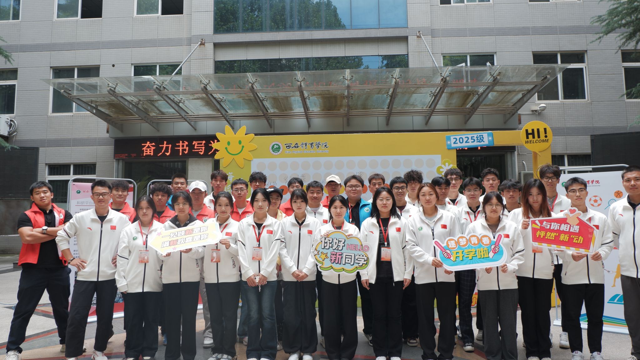 九月的风衔着书信穿过长廊,梧桐叶隙漏下碎金般的光。校门徐徐展开如一本等待落款的素笺,每一寸空气都浸染着崭新的墨香。在缓缓升起的朝阳中,运动与健康科学学院早已准备待发,期待着迎接新到来的一个个2025届新生朝气蓬勃的面孔。